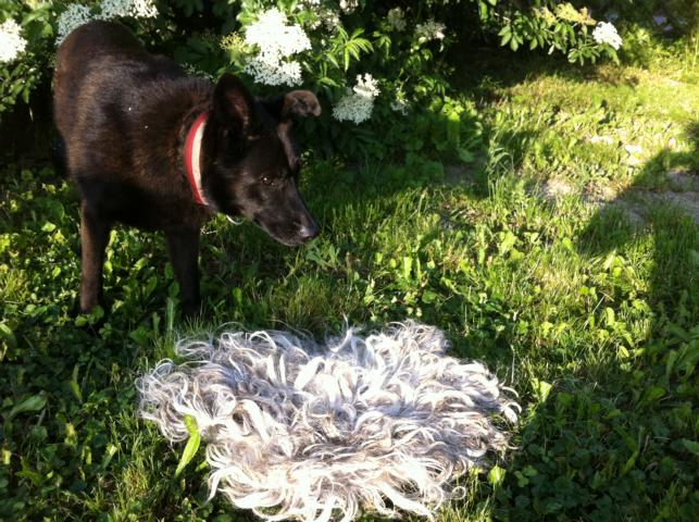 Aber auch aus Rohwolle kann man Sachen herstellen, ich hab mich an ein Sitzfell gewagt.