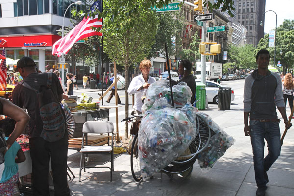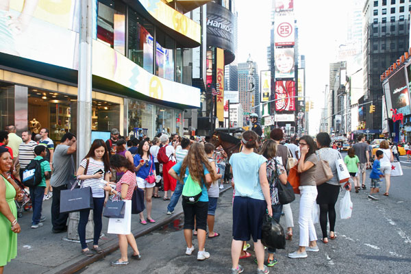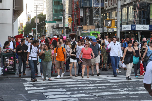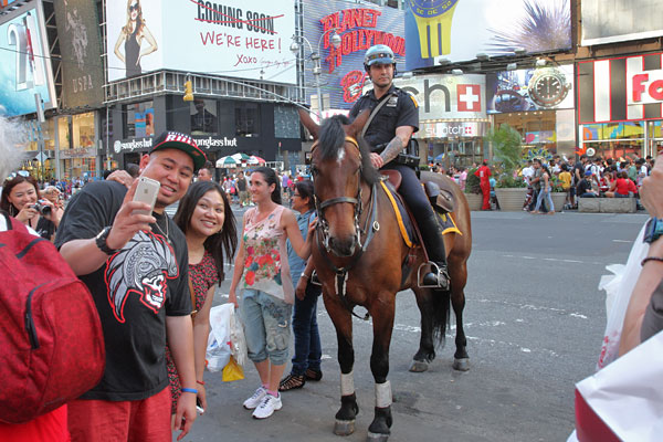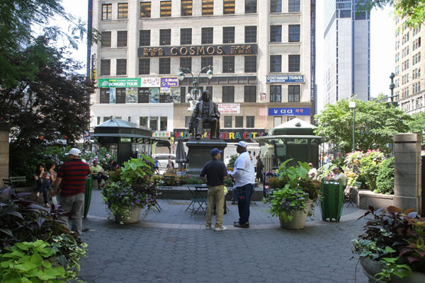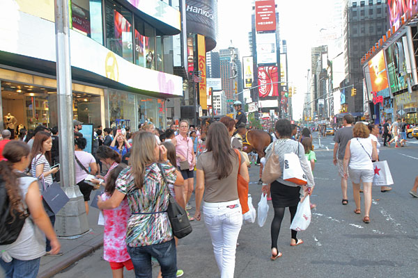 Hurra, wir sind wieder in New York! Der Flug mit LH war ok, die Maschine proppenvoll und zum Schluss wurde der Flug leicht unruhig. Die Kontrollen bei der Immigration zogen sich dahin, aber irgendwann war es dann doch geschafft. In JFK gelandet, buchten wir einen Super Shuttle zum Hotel, Kostenpunkt 17 USD pro Person.