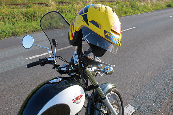 Eigentlich wollte ich mit meiner BMW F 650 fahren, aber ich bekam sie gar nicht an. Die Batterie zickte mal wieder und ich hatte keine Lust, irgendwo unterwegs stehen zu bleiben. Daher nahm ich meine kleine Estrella eine 250-ccm-Maschine, richtig gemütlich. ![]()