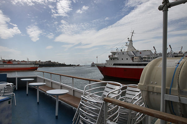 Mit Lufthansa flogen wir über München nach Athen, nahmen von dort den X96-Bus zum Hafen nach Piräus und dort hatten wir etwas Aufenthalt, da wir dieses Mal nur mit Handgepäck reisten und somit recht flott überall durchkamen. Es gab weder in Deutschland noch in Griechenland eine Pass- oder Ausweiskontrolle.