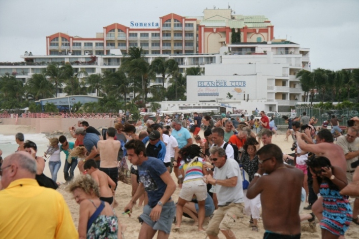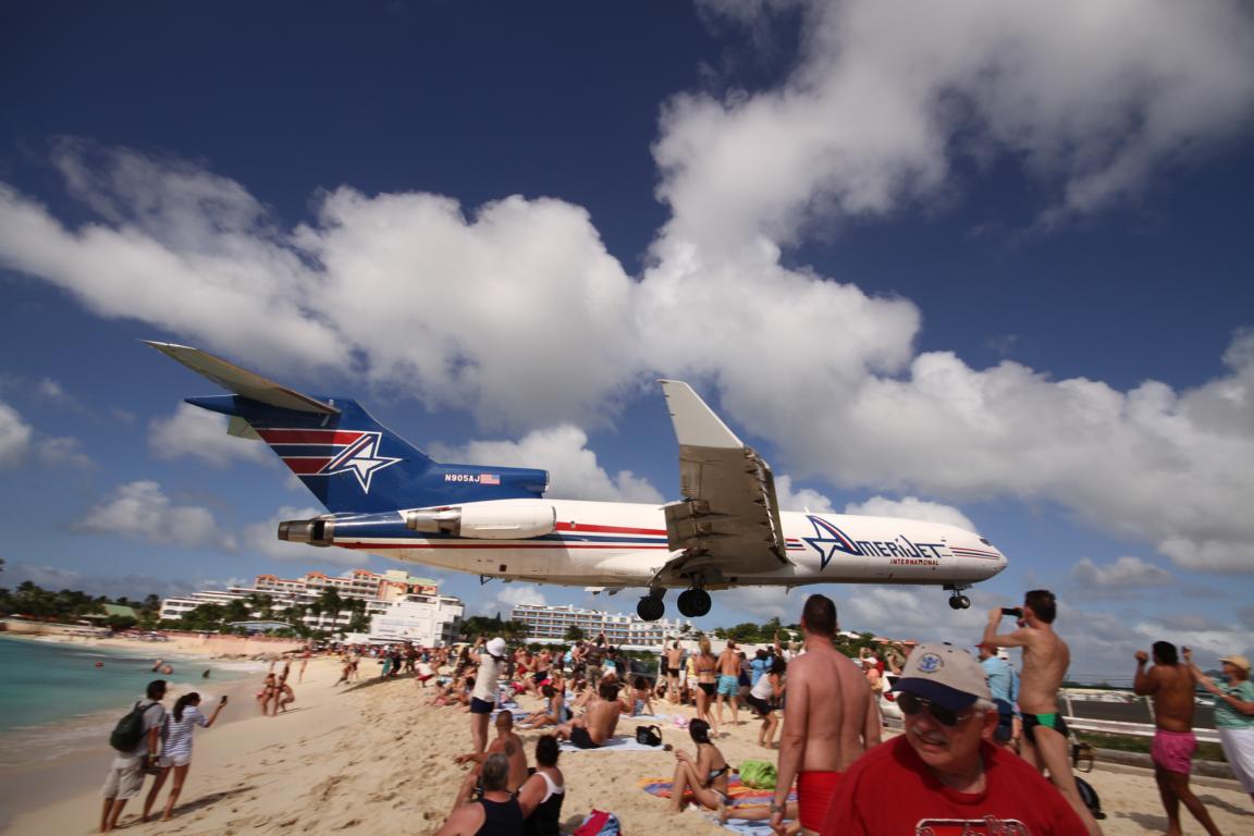 St. Maarten 2013 Am Strand unter den Flugzeugen Maho Beach und St. Martin