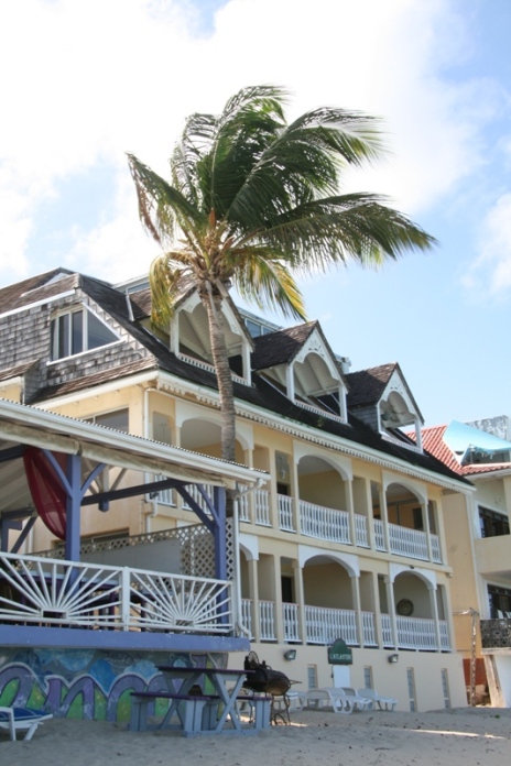 Dann machen wir uns auf zu einer kleinen Inselrundtour. Wir stoppen in Grand Case im französischen Teil. Dort in der Nähe ist der 2. Flughafen der Insel. Ich mag diesen kleinen Ort, dessen Häuser direkt am Strand liegen und vom Meer angeknabbert werden -