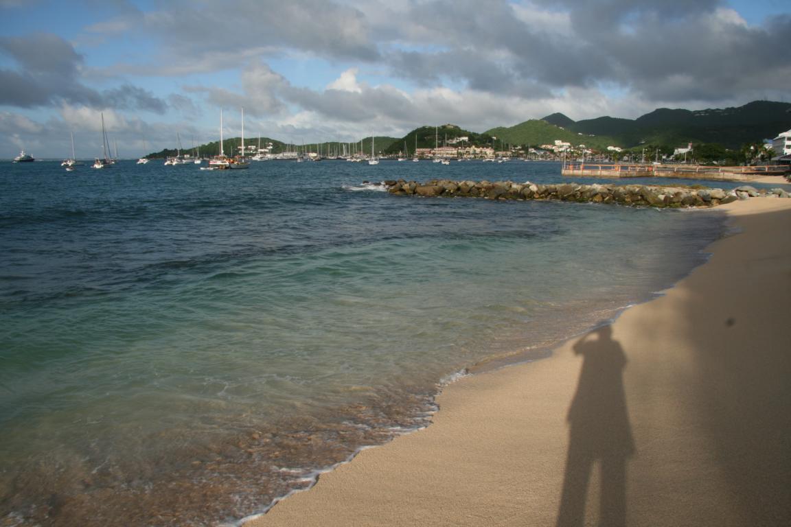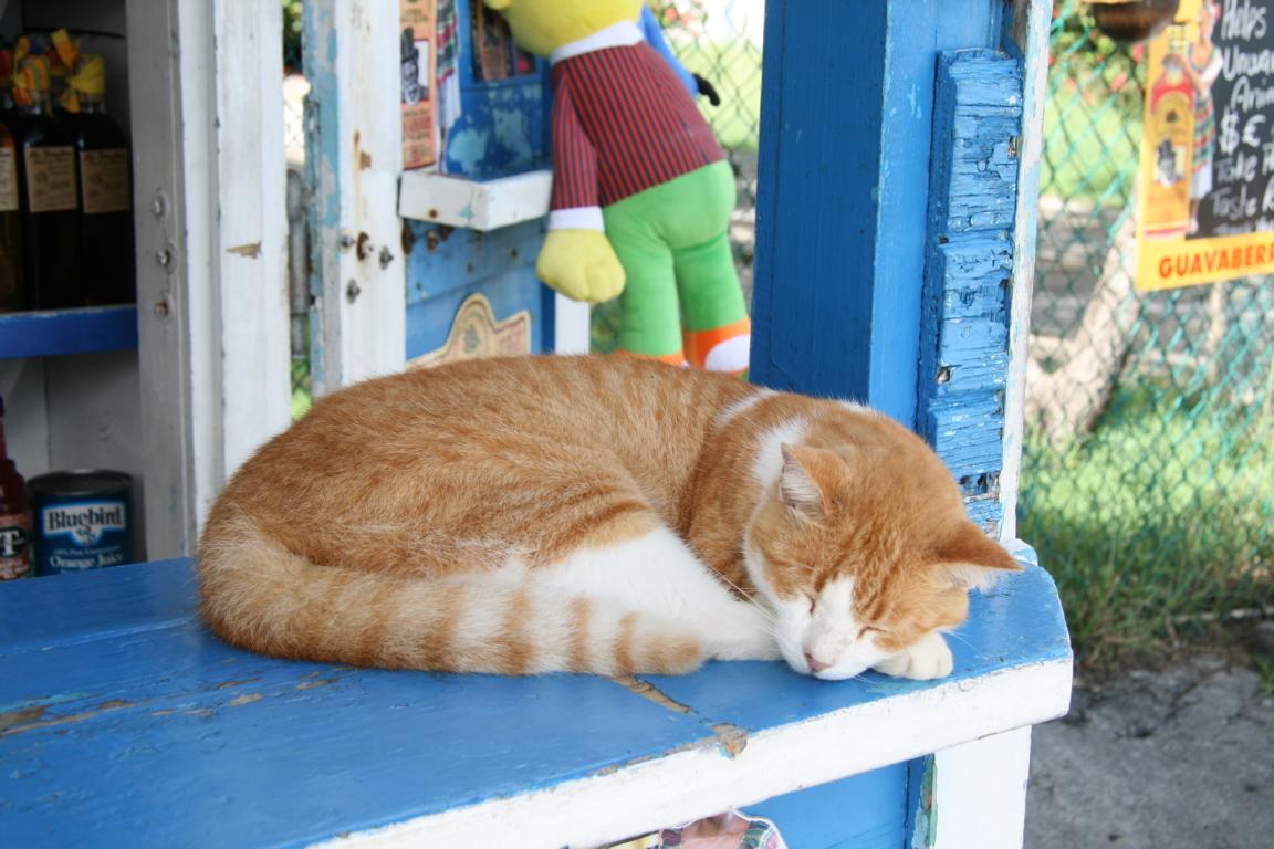 Wir fahren zu dem kleinen Regionalflughafen, wo Okke die Maschine, die gerade gelandet war, noch einmal beim Abflug erwischt, und dann geht es weiter in den nördlichen Bereich der Insel. Dort gibt es eine Stelle auf einem Berg wo ein paar kleine Gebäude mit Andenkenläden stehen. Einer bietet Gewürze und den hier typischen aromatisierten Rum an - aber mir scheint das alles zu teuer. Ich mache ein Foto von der Katze. Als ich dann nichts kaufe heißt es plötzlich ok, dann solle ich jetzt den Dollar für das Foto zahlen.Irgendwo stand ein Holzschuh, den ich vorher gar nicht gesehen hatte, auf dem etwas geschrieben stand, was kaum lesbar war. Die Dame hinter dem Tresen meinte dann irgendetwas von sie würde sich um herrenlose Tiere kümmern - verstanden habe ich es nicht wirklich und meinte ok, dann würde ich jetzt das Foto löschen. Die weitere sprachliche Auseinandersetzung erfolgte auf einer Nichtverständnisebene - schließlich meinte sie ich solle gehen, was ich dann tat - mit dem Foto und ohne Dollar. Abends im Supermarkt finde ich die gleichen Produkte. Das Glas mit Gewürzen, das sie mir angeboten hat und für das sie 12 Dollar oder Euro (ich bin ja im französischen Teil, also müssten es Euros sein) kostet dort 5.95 Euro.