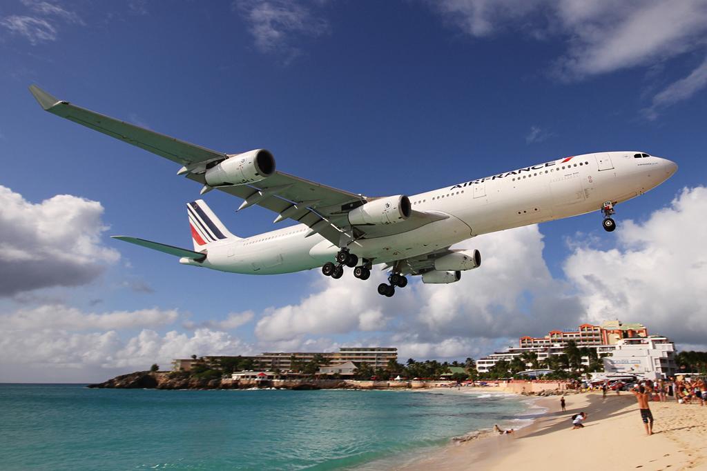 Wir düsen an den Flughafenstrand, denn bisher war es nicht gelungen die große Air France mit Sonne aufzunehmen -