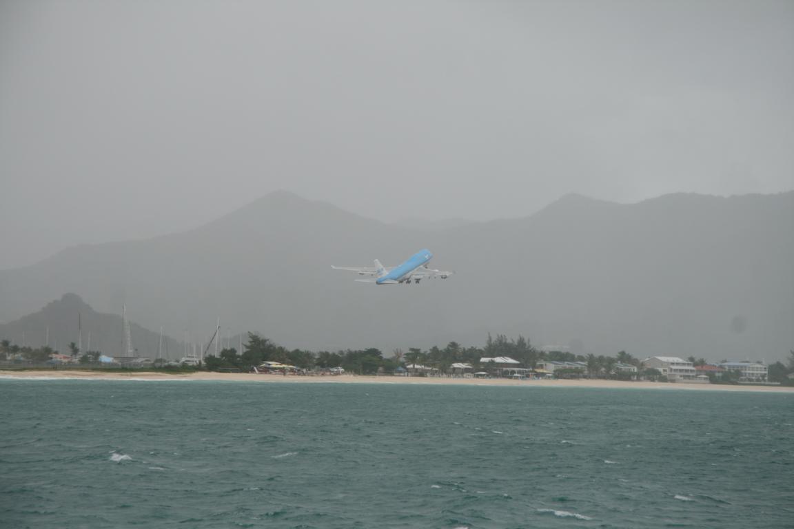 Egal, wir verlassen fluchtartig den Strand, wollen aber von einer anderen Stelle noch den Start der KLM miterleben, die hier nur zwischenlandet und weiter nach Curacao fliegt.