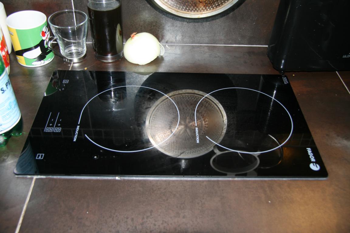 Und hier muss ich Euch nocheinmal zeigen, wie ich koche: Es gibt es Ceranfeld mit zwei schmalen Kochplatten und genau drei Töpfe - einer in normaler Größe und diese beiden Teile, die viel zu groß für die Platten sind. Gerade sagt mir Titti, von der wir den Schlüssel haben, und die am Strand ist, dass die Besitzerin Töpfe für das Ceranfeld gesucht hat und es auf der ganzen Insel keine anderen gegeben hätte. -