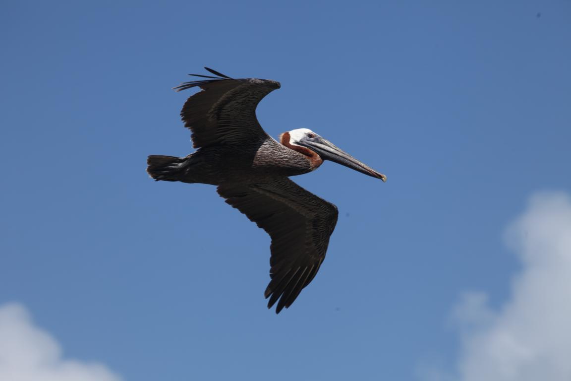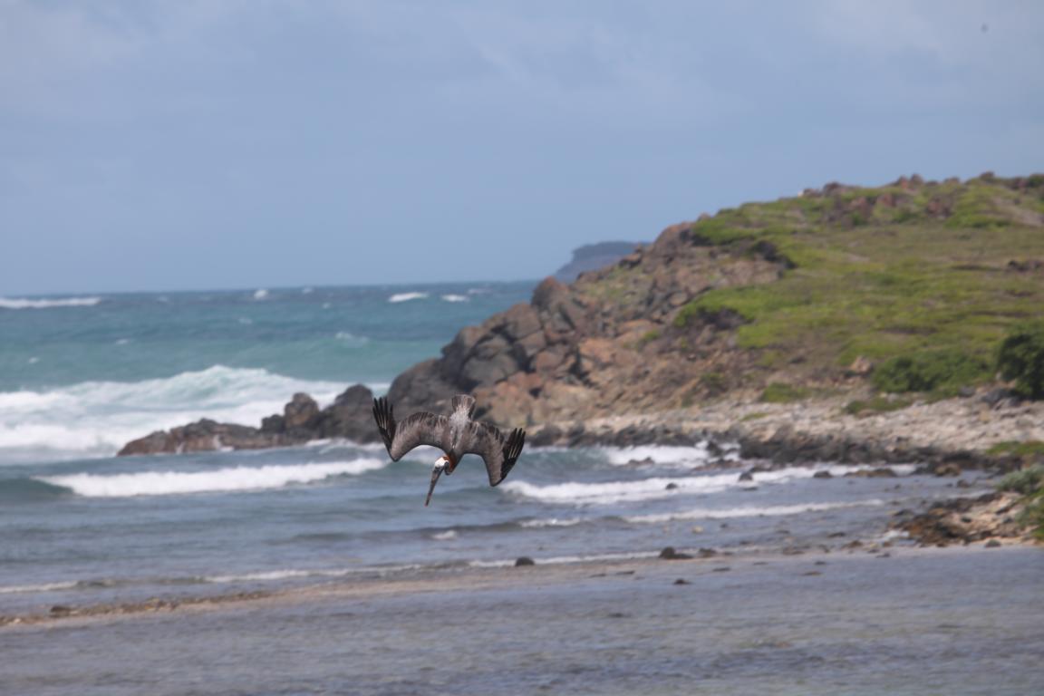 In der Bucht gibt es jetzt drei Häuschen als Beboachtungsstationen. Im Meer findet man unendlich viele Korallen und Muscheln. Man soll von dort aus Wale sehen können - theoretisch, und eben die Schildkröten. Wir sehen heute vor allem Pelikane und haben einen Heidenspaß diese zu beobachten.