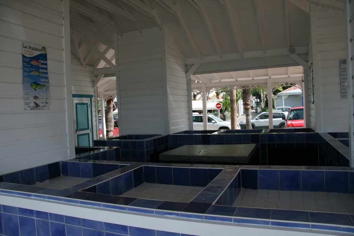 Dies sind die Hallen, in denen Markt stattfindt - um dieser Uhrzeit sind die Händler mit den einheimischen Sachen schon längst weg - bis auf Stände mit Gewürzen und aromatisiertem Rum- hier eine Spezialität, und etwas Obst