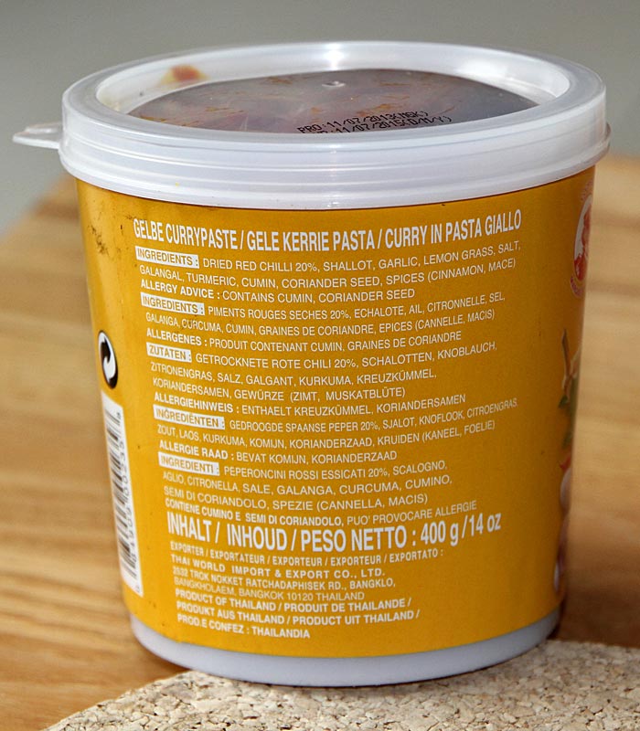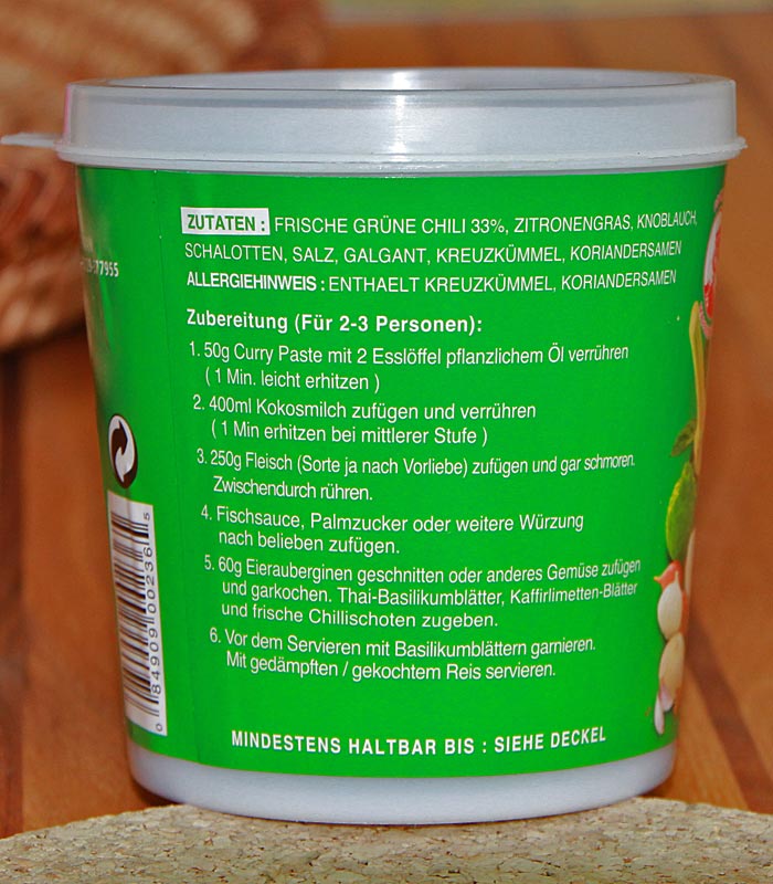 Fisch lese ich gerade noch. Nicht zu fassen, schon wieder kann ich die Currypaste nicht kaufen. Auch bei den anderen Firmen ist jeweils Fisch enthalten.
