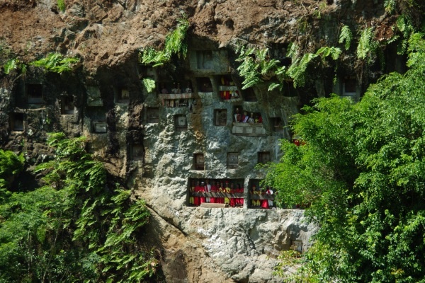 Bei Lemo gibt es Felsengräber und Wächterpuppen zu sehen.