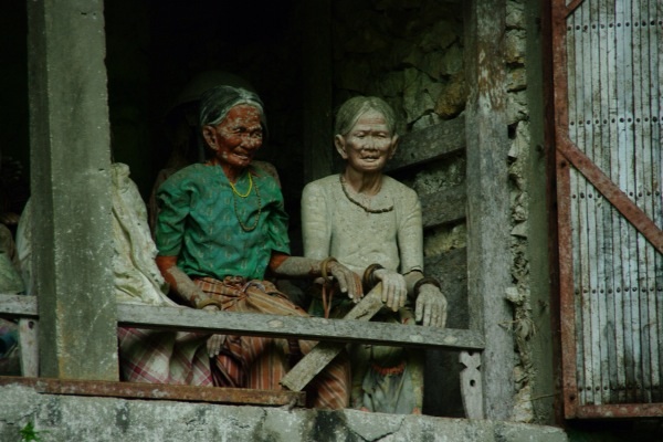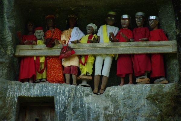 Wächterpuppen beschützen die Toten lange Jahre und werden alle drei Jahre mit neuen Kleidern versehen. Zudem gibt es Abbilder der Toten.