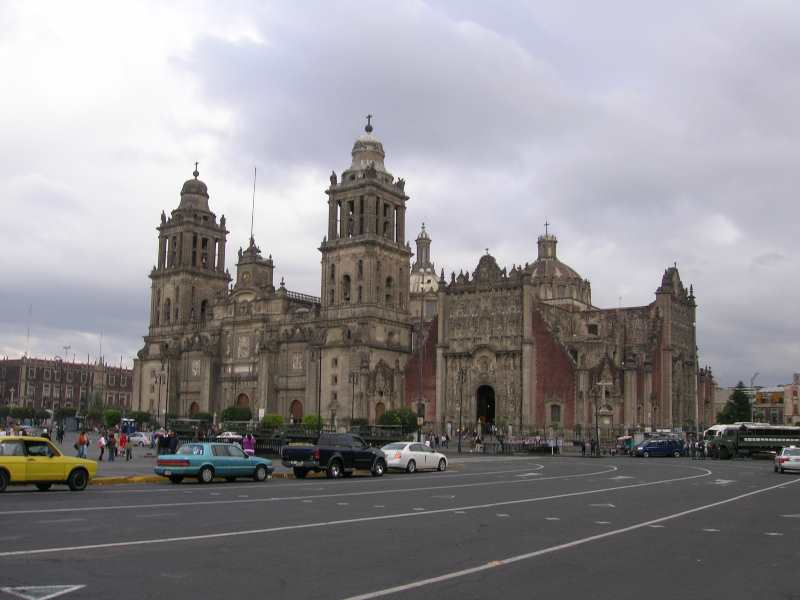 Kathedrale an der Plaza Mayor, Rathaus, Zocalo. Am Zocalo war ein grosser Markt, überall viel Leben.