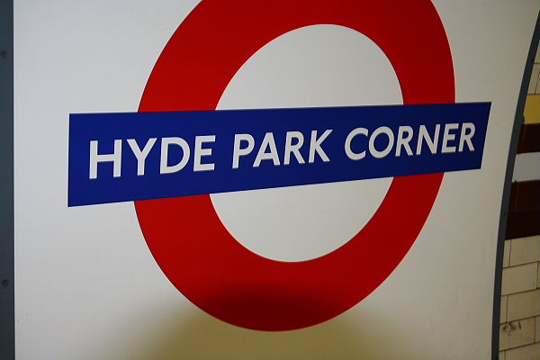 Die nächste Staion heißt Hyde Park Corner. Wir haben Hunger und möchten ins Hardrock-Cafe...