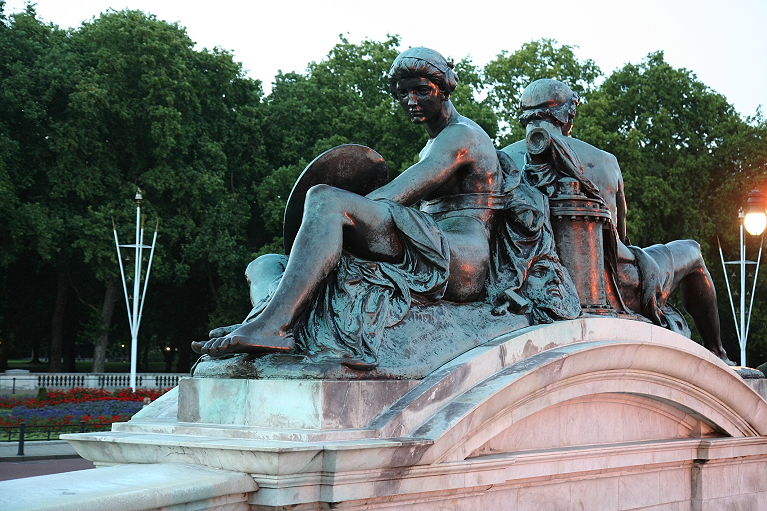 In der Nähe des Buckingham Palastes steigen wir aus und schauen uns den Palast von außen an. Der Buckingham Palast wurde 1705 erbaut und dient seit 1837 als Residen für die amtierende Königin. Es sollen sich insgesamt 775 Räume in dem Schloss befinden! Da kann man sich wahrlich verlaufen.Vor dem Palast steht das Victoria Memorial. Es ist 26 m hoch und aus einem einzigen Marmorblock gearbeitet. Oben auf steht die vergoldete Siegesgöttin. Sie ist 4 m hoch... Das sieht schon sehr gewaltig aus. Wir gehen am Palast vorbei. Jenni schaut immer mal durch die Gitterstäbe, aber die Königin lässt sich nicht blicken. Wir gehen weiter durch den Green Park und nehmen dann einen Bus zurück in die Nähe von Westminster Abbey. Ein Blick auf Big Ben zeigt, dass die Uhren wieder gehen.