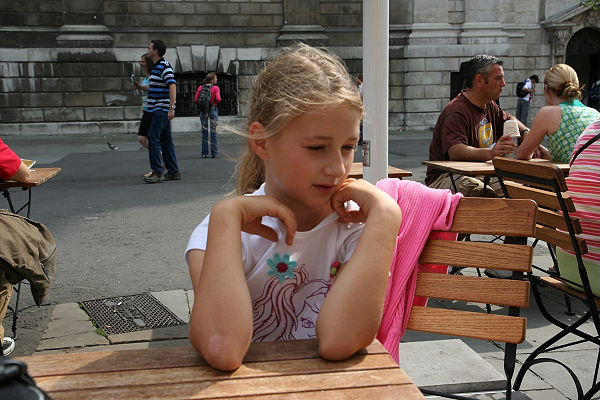 Für uns war es ein Geschiebe und Gedränge. Wir schauten uns einige Auslagen an und sahen zu, dass wir mit dem Strom weitergingen. Eine Vorstellung auf dem großen Platz hielt uns für einige Zeit gefesselt. Ein Künstler, schwarz angemalt mit buntem Bananenröckchen machte seine Witze auf einem Hochrad. Als Helfer hat er sich Daniel einen 16-jährigen Jungen aus Deutschland aus der Menge erwählt. Er war nun das Maskottchen für eine halbe Stunde und Jenni amüsierte sich auf den Schultern von Friedrich, denn sonst hätte sie nichts sehen können.