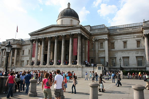 Zu den bedeutendsten Galerien der Welt zählt die National Gallery. Sie beherbergt Gemälde von Leonardo da Vinci, Michelangelo, Rubens, Rembrandt, Monet, Cezanne und van Gogh. Diese Galerie befindet sich auf der nördlichen Seite des Platzes. Wir überqueren einmal den Platz, machen hier und da ein Foto und steigen am Trafalgar Square wieder in die Underground ein.