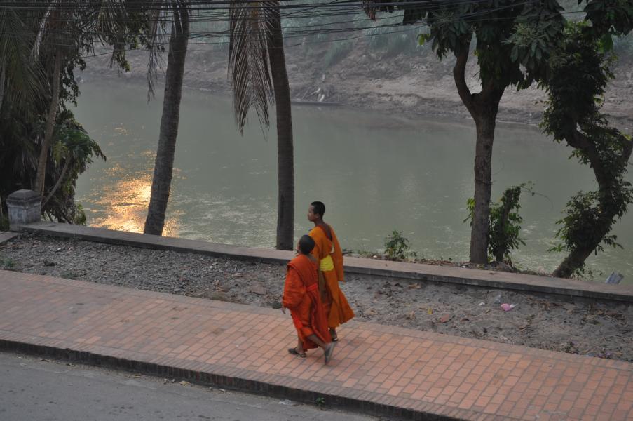 Tja, und hier in LP muss ich sagen - alles super, alles im Lao style relaxed, und v.a. habe ich echt ein super Zimmer für uns vorab gebucht: Auf der Halbinsel in der Altstadt, am Flussufer, 1. Etage eines hübschen, kleinen Hauses mit Balkon und ein echt grosses Zimmer mit Holzboden, nur genial!