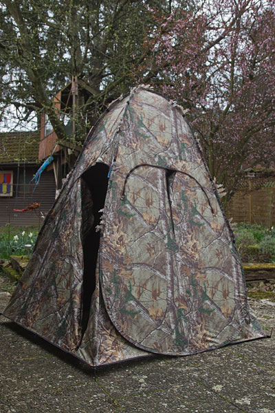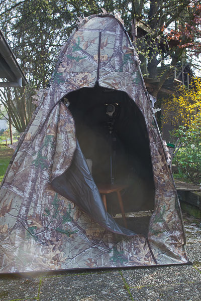 Die Vögel in meinem Garten haben sich schnell an das Tarnzelt gewöhnt.