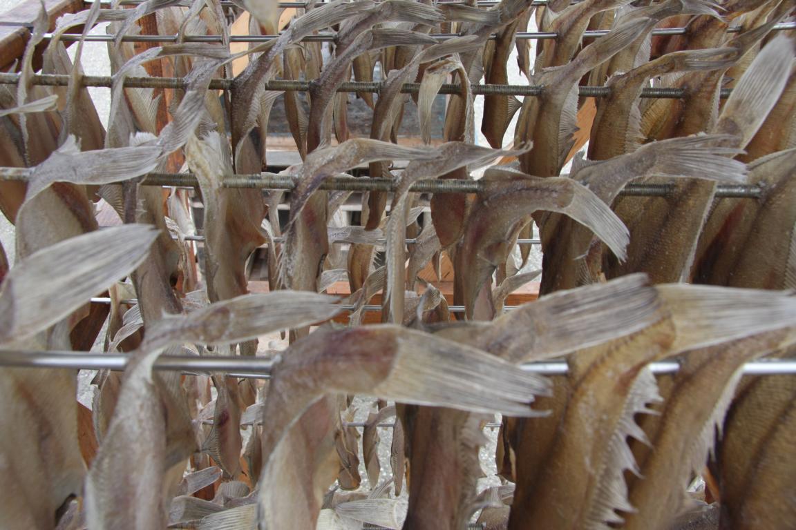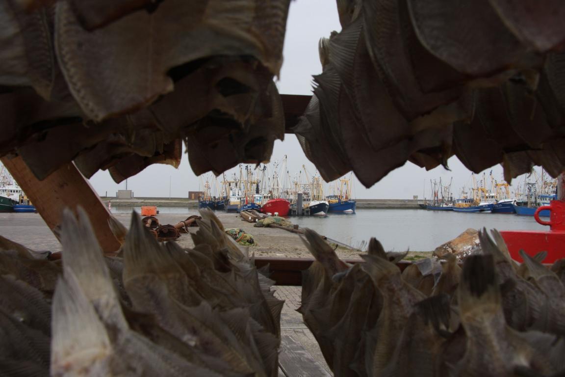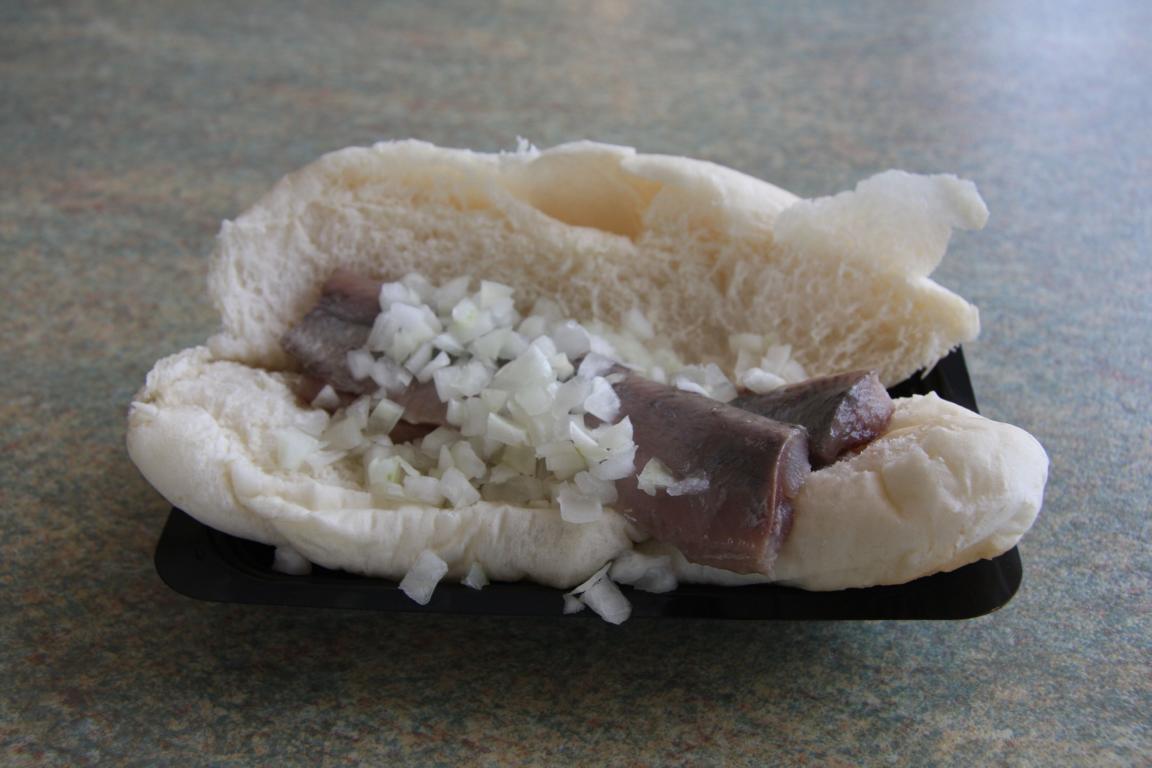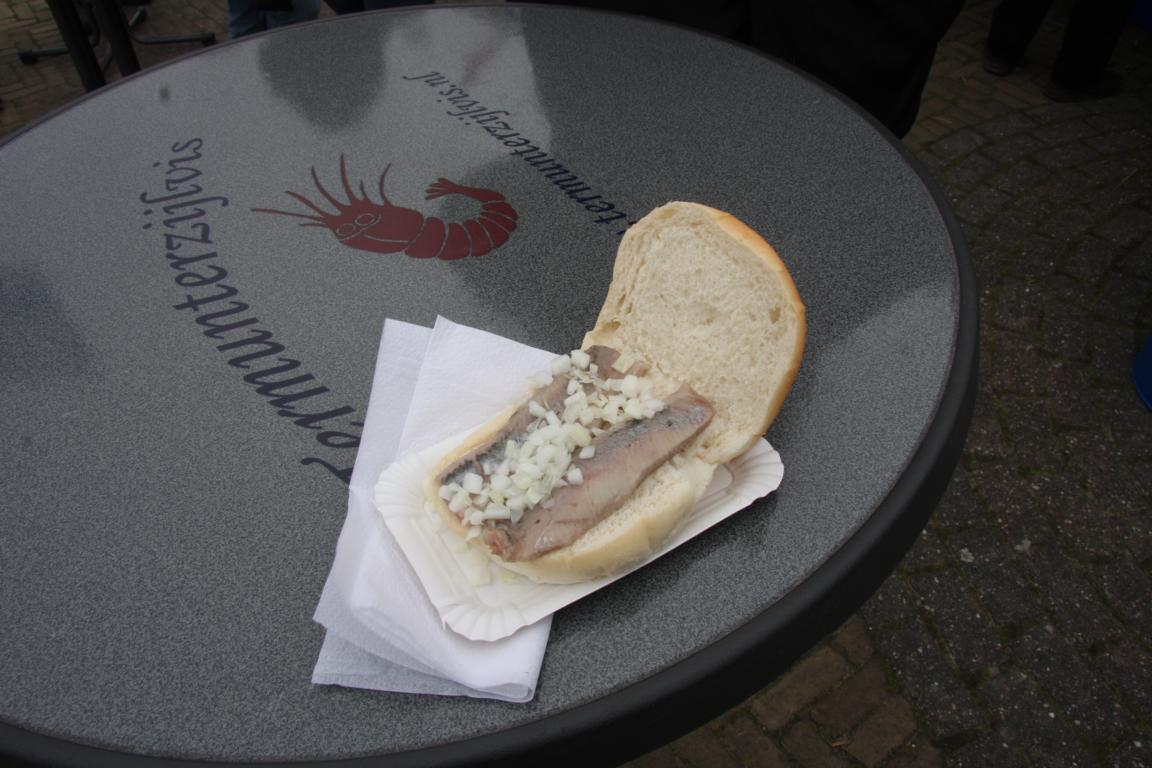 Also suchen wir erst einmal ein Fischrestaurant vor Ort auf und genießen ein Brötchen mit de jonge haring und uien.... lecker! Vor dem Restaurant hängt Trockenfisch, der Geruch ist sicherlich nicht jedermanns Sache