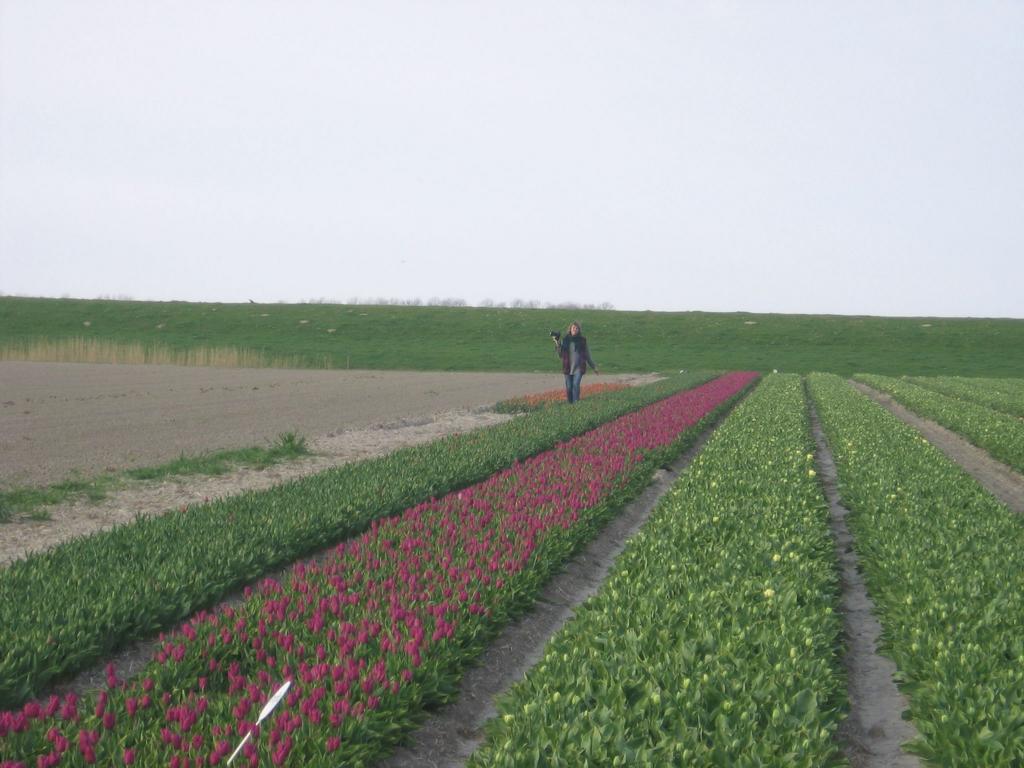 Jan fährt nach Nordpolderzijl. Die Freundin meint,das könne nicht sein.Sie hat im Internet etwas gefunden, dass bei einem Bauernhof im Oktober Zwiebeln gesetzt worden sind - da muss doch ein Feld zu finden sein... Ich läster -und fotografiere ihre Tulpen im Garten (Bild 1) Sie fährt mit mir los und: -