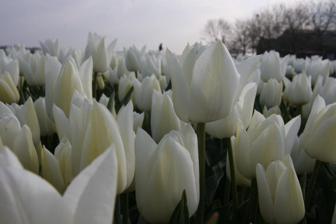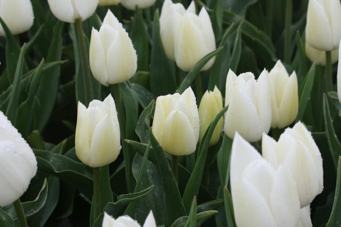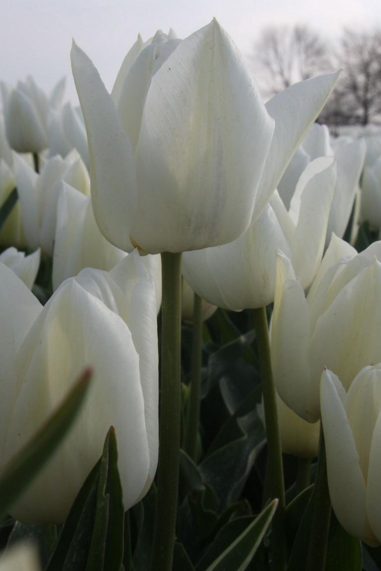 Es gibt weiße Tulpen die bereits in voller Blüte stehen. HERRLICH!