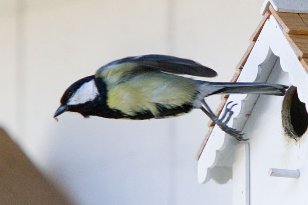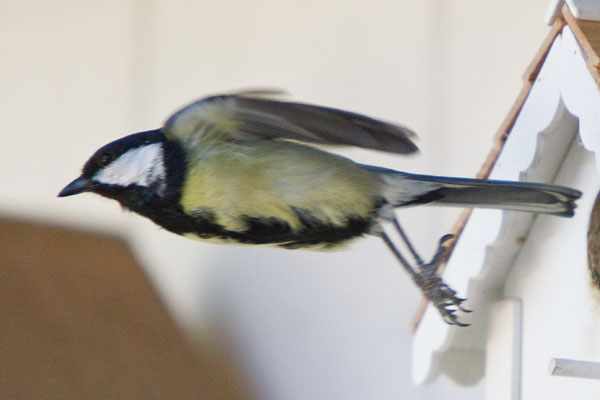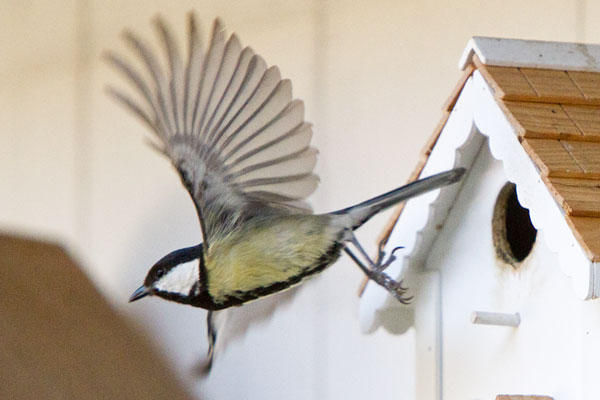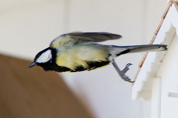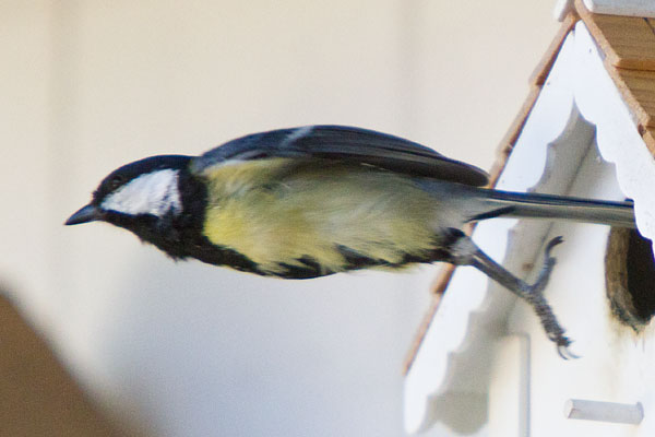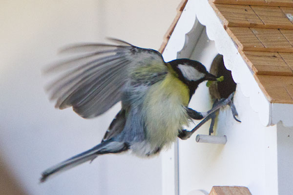 Pfeilschnell kommen sie aus dem Häuschen geschossen, holen das Futter und sind ebenso schnell wieder drinnen. Da streikt sogar mein Fotoapparat von Zeit zu Zeit.