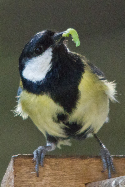 Heute habe ich nun gesehen, dass sie ohne Ruhepause hin und her fliegen und immer eine leckere Mahlzeit im Schnabel hielten. Grüne Maden, die sie vom Kirschbaum holten und natülrich auch anderes Krabbelgetier.