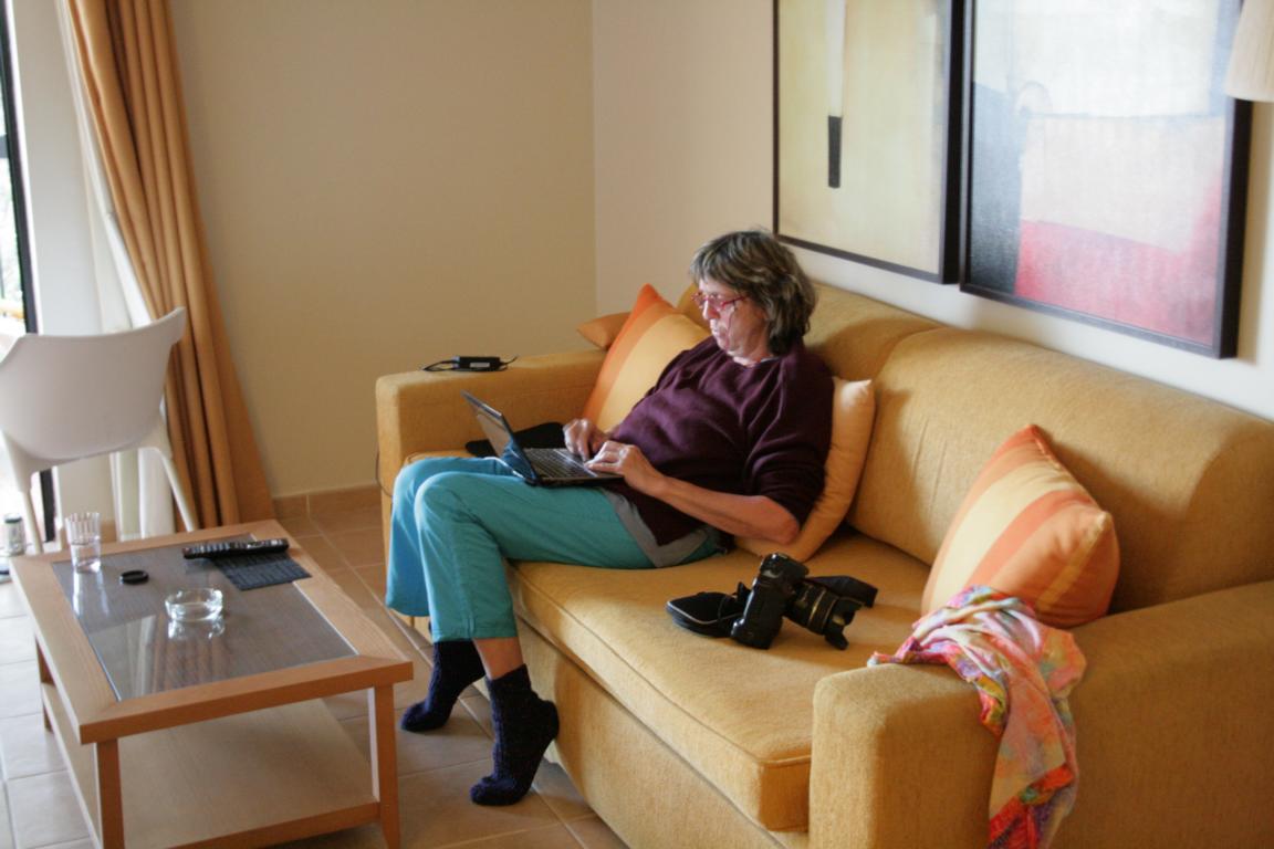 Der Flieger ist fast ausgebucht und es ist eng. Der Flug verläuft ruhig und wir landen um 8.20 Uhr in Faro.Mit dem Auto klappt alles, auch wenn zunächst nur ein Mitarbeiter zur Bearbeitung der Autoaufträge da ist und die Schlange der Abholenden länger und länger wird. Das Hotel finden wir schließlich auch. Am einfachsten ist es die N 125 entlang zu fahrten bis es links ab geht Richtung Albufeira. Dann gerade aus, bis man an einen Kreisel kommt, auf dem etwas blaues steht - dort links abbiegen und bis zum Ende der Straße zu einem weiteren Kreisel und wieder links Richtung Eulalia. Das Hotel liegt dann auf der rechten Seite.