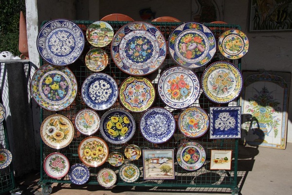 Von Albufeira aus geht es an die N125 zu dem kleinen Ort Porches. Dort soll es viele Keramikwerkstätten geben und einen besonderen Kamin. Unter Kamin muss man sich einen Schornstein vorstellen. Bild 1 ist dieser besondere Kamin Es ist Sonntag und die Keramikwerkstätten haben weitestgehend zu. Vor dem Euro konnte man extrem günstig schöne Keramik in Portugal kaufen - jetzt sind die Preise heftig. Wir finden eine offene Werkstatt, und ich kaufe zwei kleine Schmetterlinge - alles andere ist mir einfach zu teuer (und ich leide nicht unter Mangel an Geschirr und Keramik)