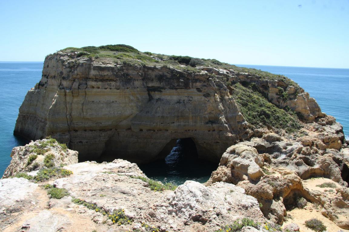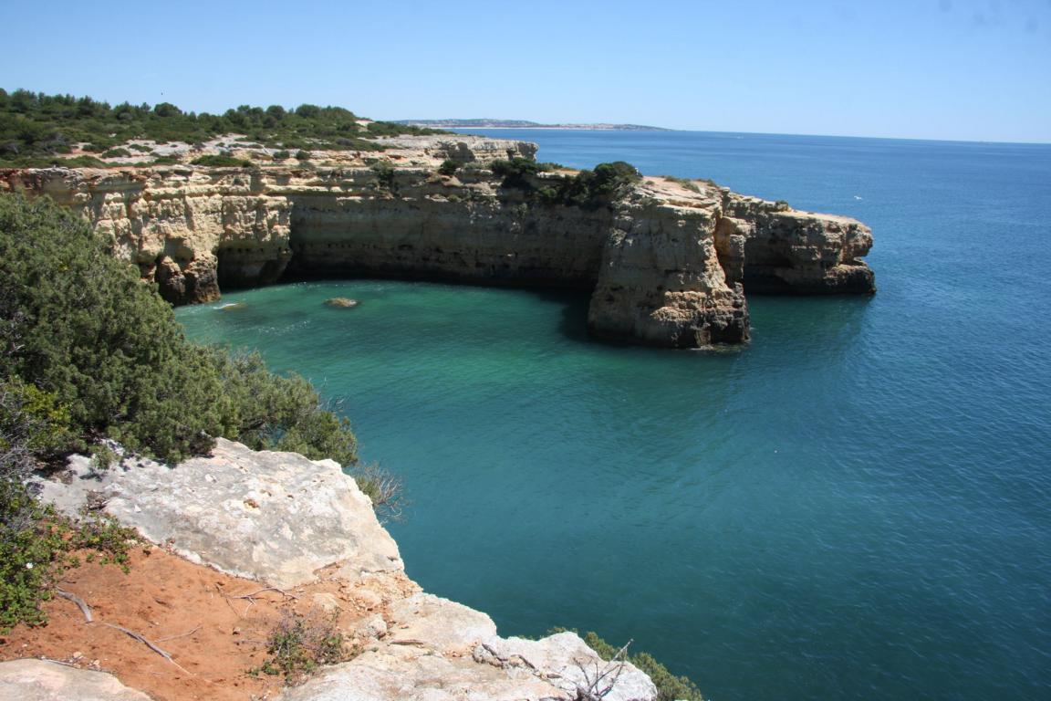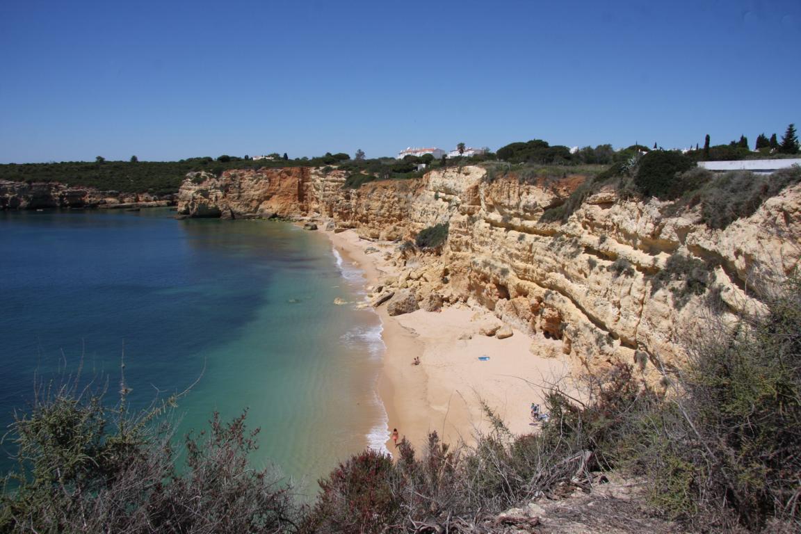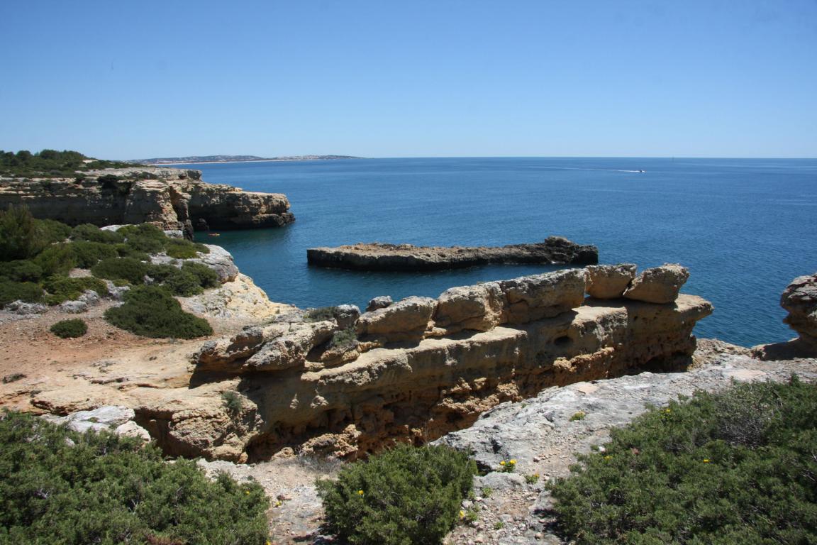 Aber dieser Abschnitt gehört auch zu dem Bereich, wo man eine Klippenwanderung machen kann- man kann bereits in Bengil starten, dann soll es bis zum Ort Carvoeiro 3,5-4 Stunden dauern, oder hier in Farol, dann läuft man 2 Stunden. -