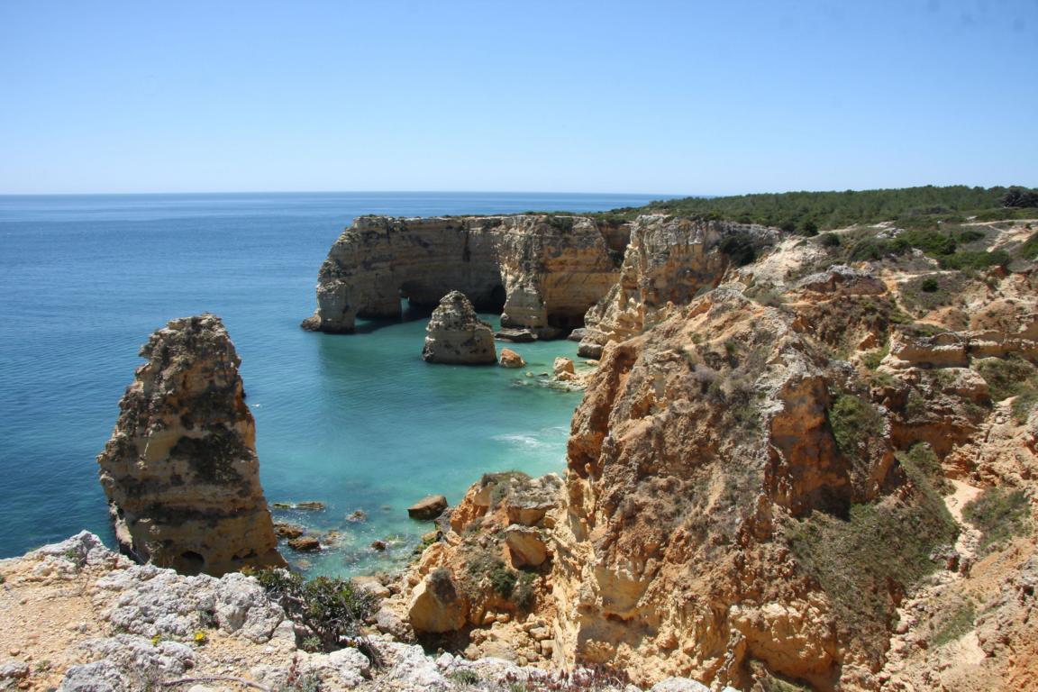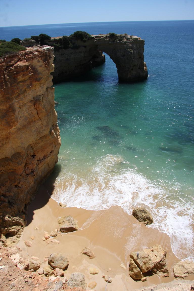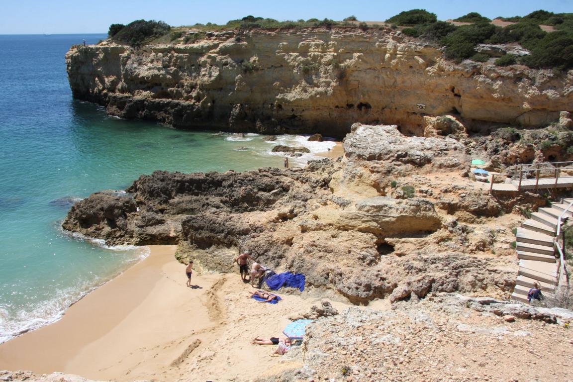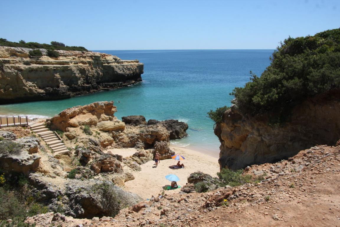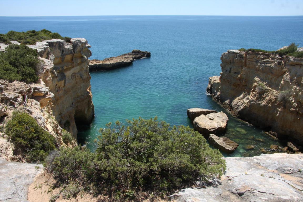 Aber dieser Abschnitt gehört auch zu dem Bereich, wo man eine Klippenwanderung machen kann- man kann bereits in Bengil starten, dann soll es bis zum Ort Carvoeiro 3,5-4 Stunden dauern, oder hier in Farol, dann läuft man 2 Stunden. -
