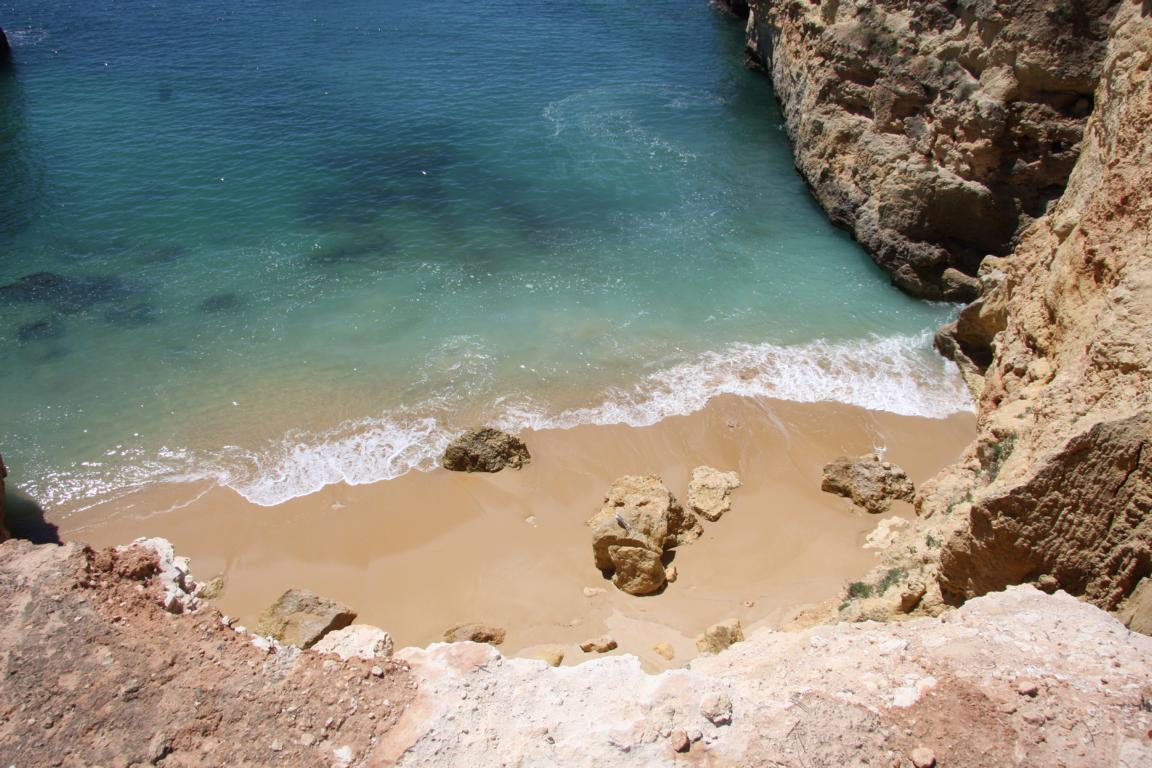 Es geht zurück an die Küste zur Kapelle Nossa Senhora da Rocha- wir sind überrascht, wie schön es dort ist. Rechts und links gibt es Felsen und Strände