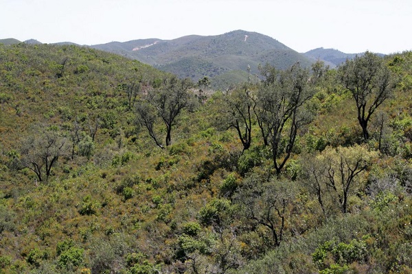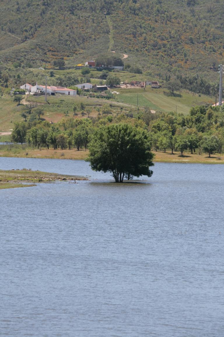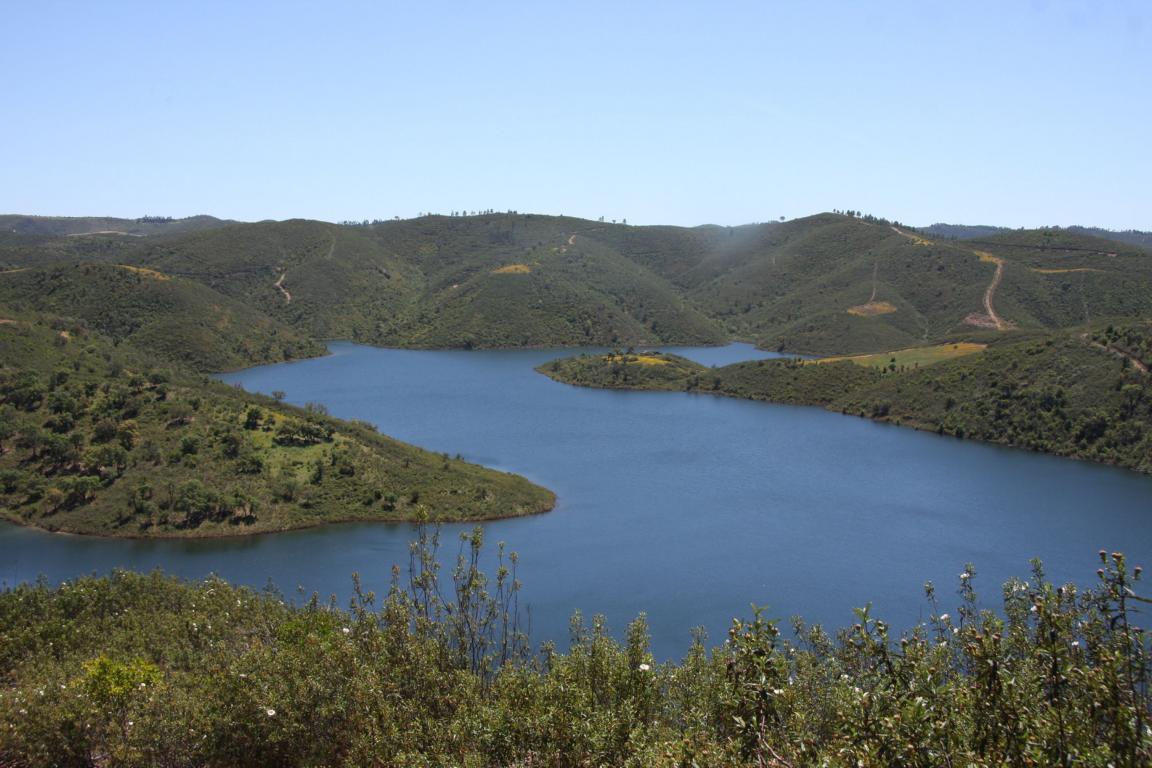 Auf der Weiterfahrt nach Monchique fahren wir eine Straße durch die "Berglandschaft", die in der Straßenkarte als landschaftlich besonders schön eingezeichnet ist. Zunächst kommen wir an einem Überschwemmungsgebiet vorbei