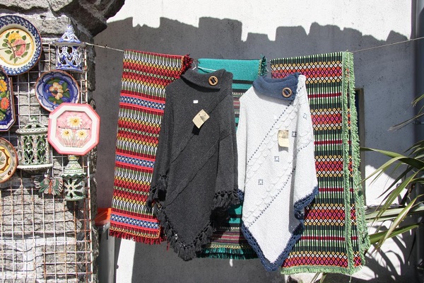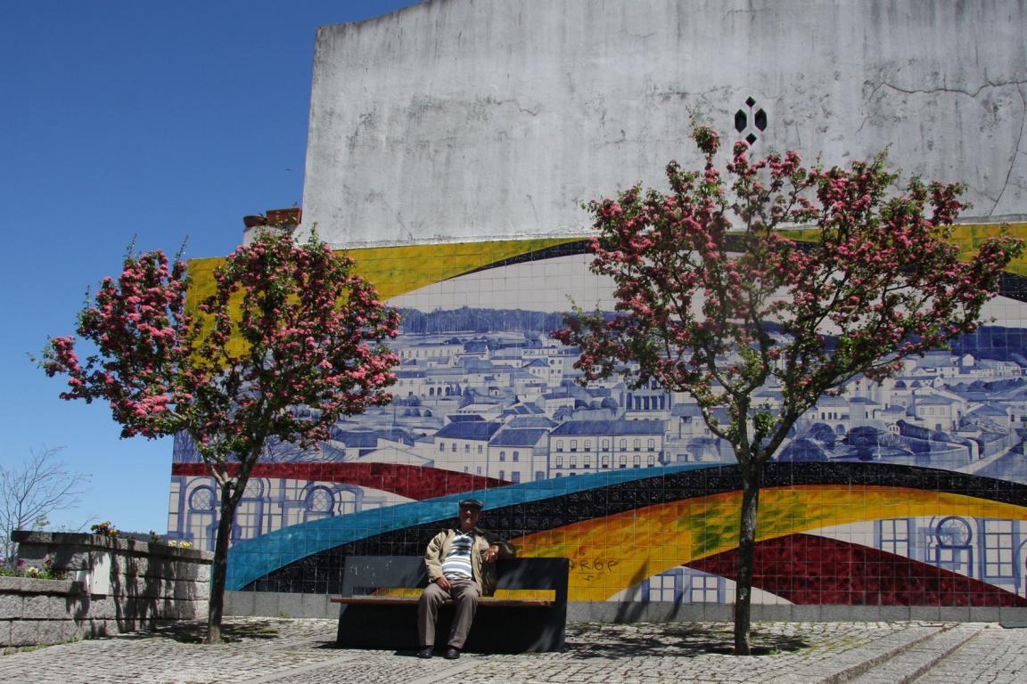 Es gibt einen Laden mit portugiesischen Artikeln und ich bin überrascht, denn dort hängen Decken - und genau so eine mit einem ähnlichen Muster habe ich zuhause, 1978 in Portugal als Studentin gekauft - die Muster gibt es immer noch