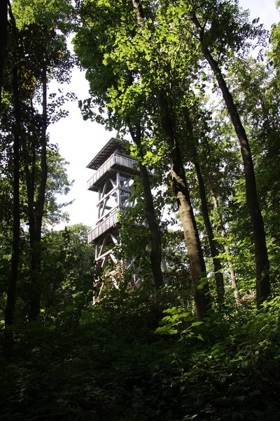 Vom Labyrinth sind wir dann zum Aussichtsturm gelaufen. Rundherum schöner Wald.