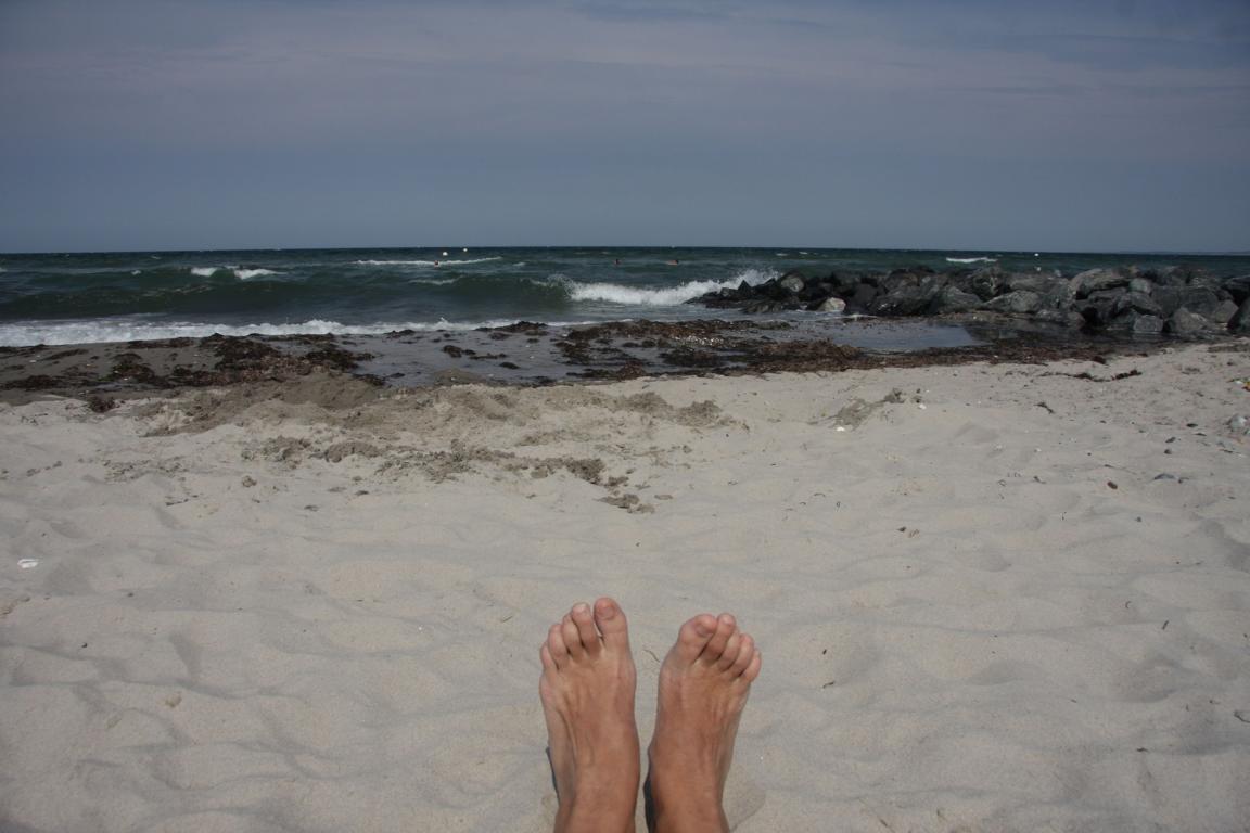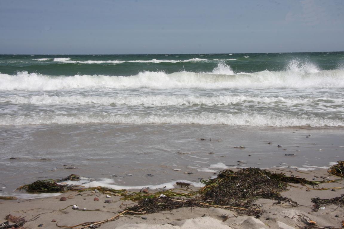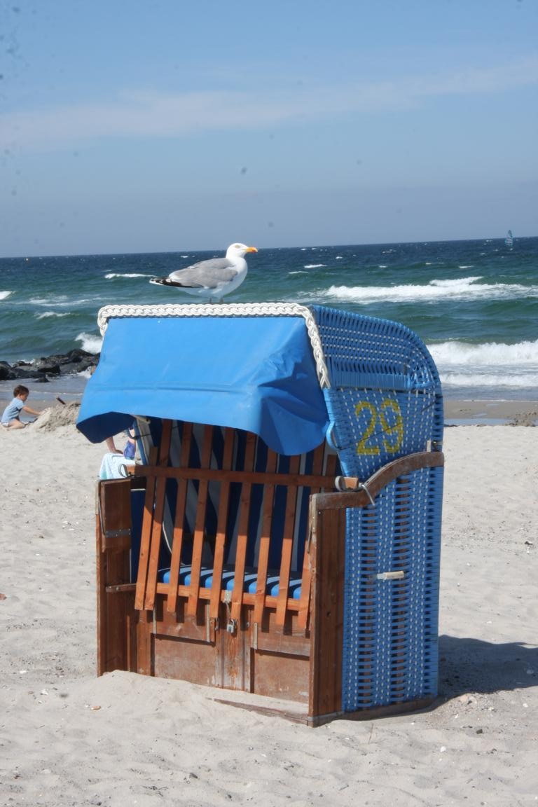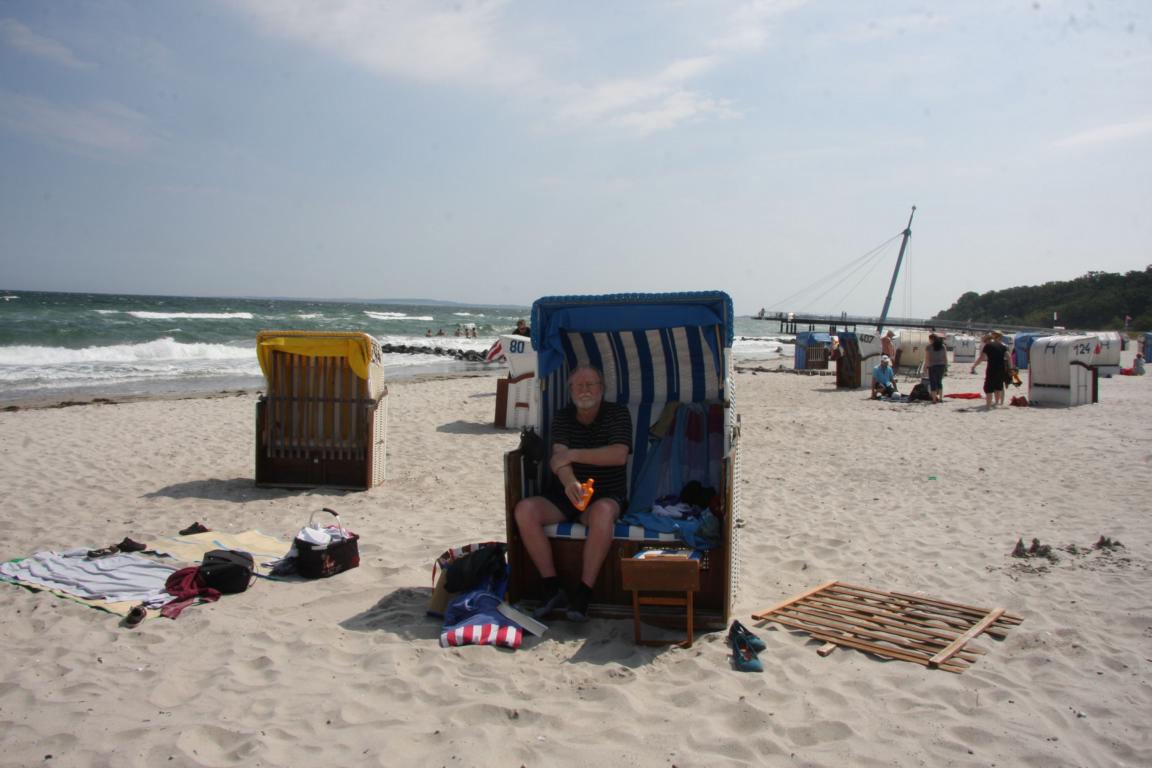 Wir erwischen Tage mit starkem Ostwind - an einem weht sogar die rote Fahne...Für die Ostsee gibt es ordentliche Wellen - anderseits kann man es mit dem Wind gut in der SOnne aushalten, und im Strandkorb sowieso -