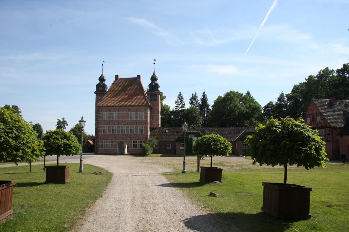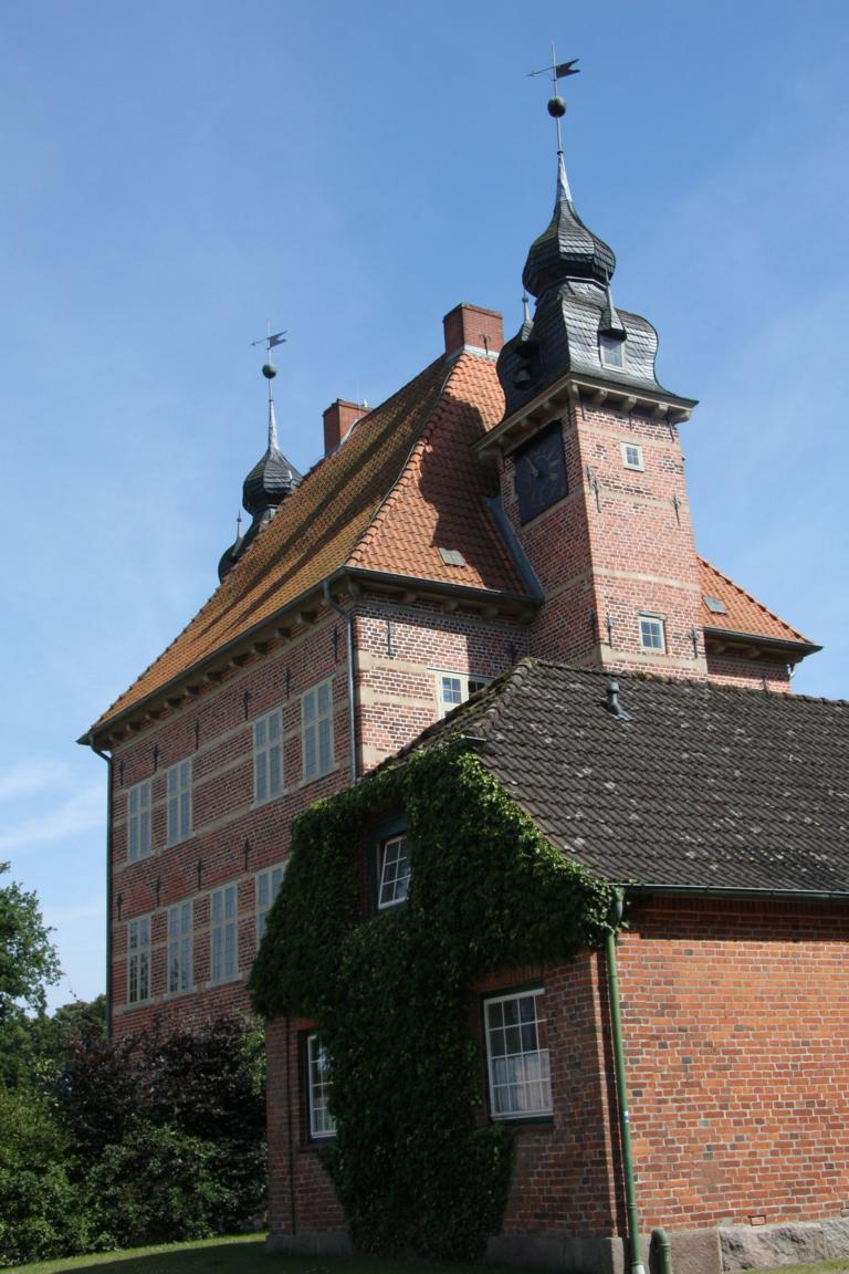 Hier noch ein Blick aufs Gutshaus, in dem man sich auch für Feiern einmieten kann, und ein Blick vom Gutshaus auf das Torhaus. Man kann übrigens im Torhaus auch heiraten