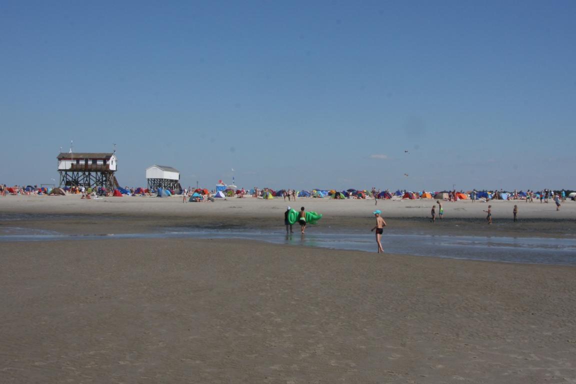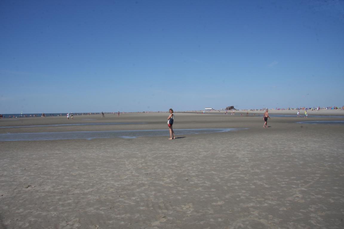 Ganz anders als an der Ostseeküste sieht es an der Nordseeküste - entweder gibt es gar keinen Strand, und Salzwiesen trennen quasi Land und Meer, oder es gibt breiten Strand - wie in St. Peter Ording, wo der Strand so breit ist, dass mit dem Auto drauffahren kann. Dort fahren wir am nächsten Tag von Hamburg aus hin.
