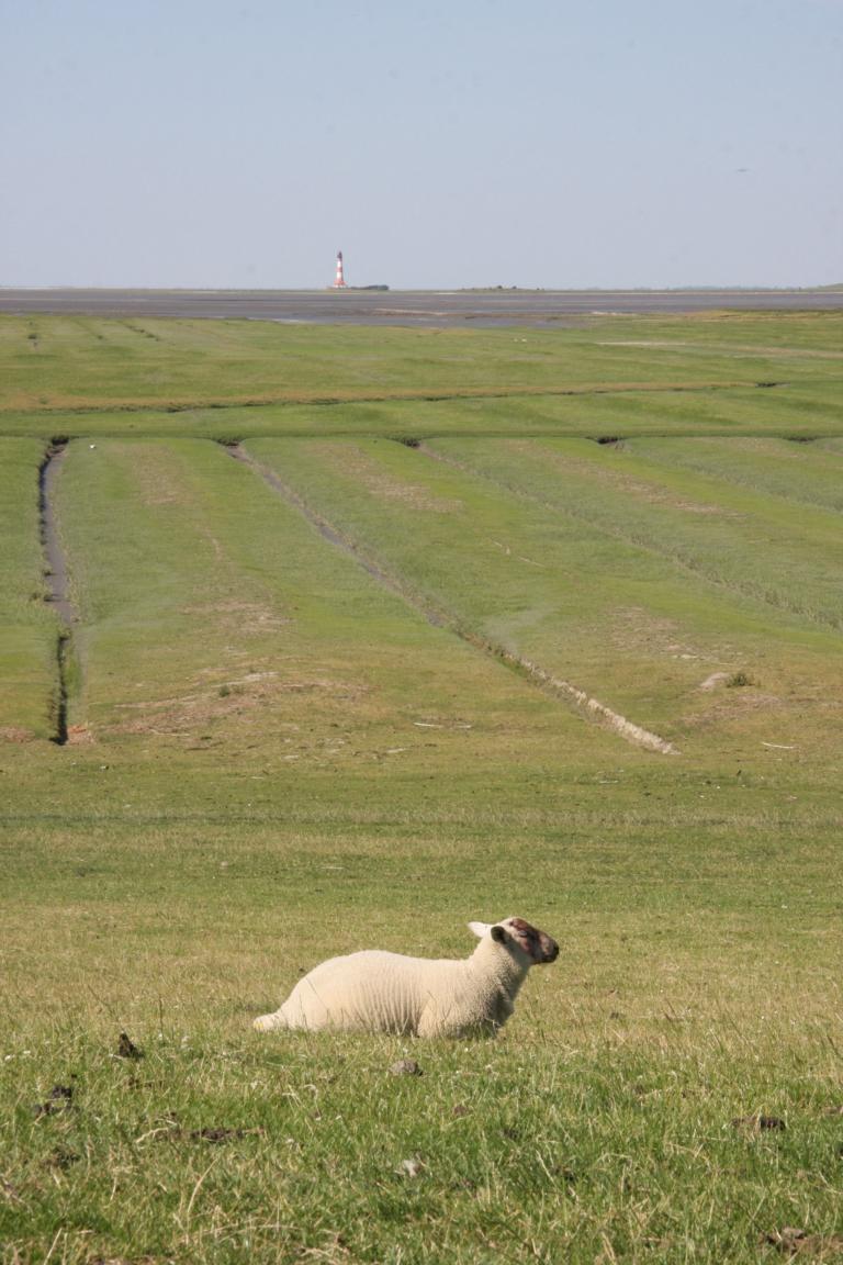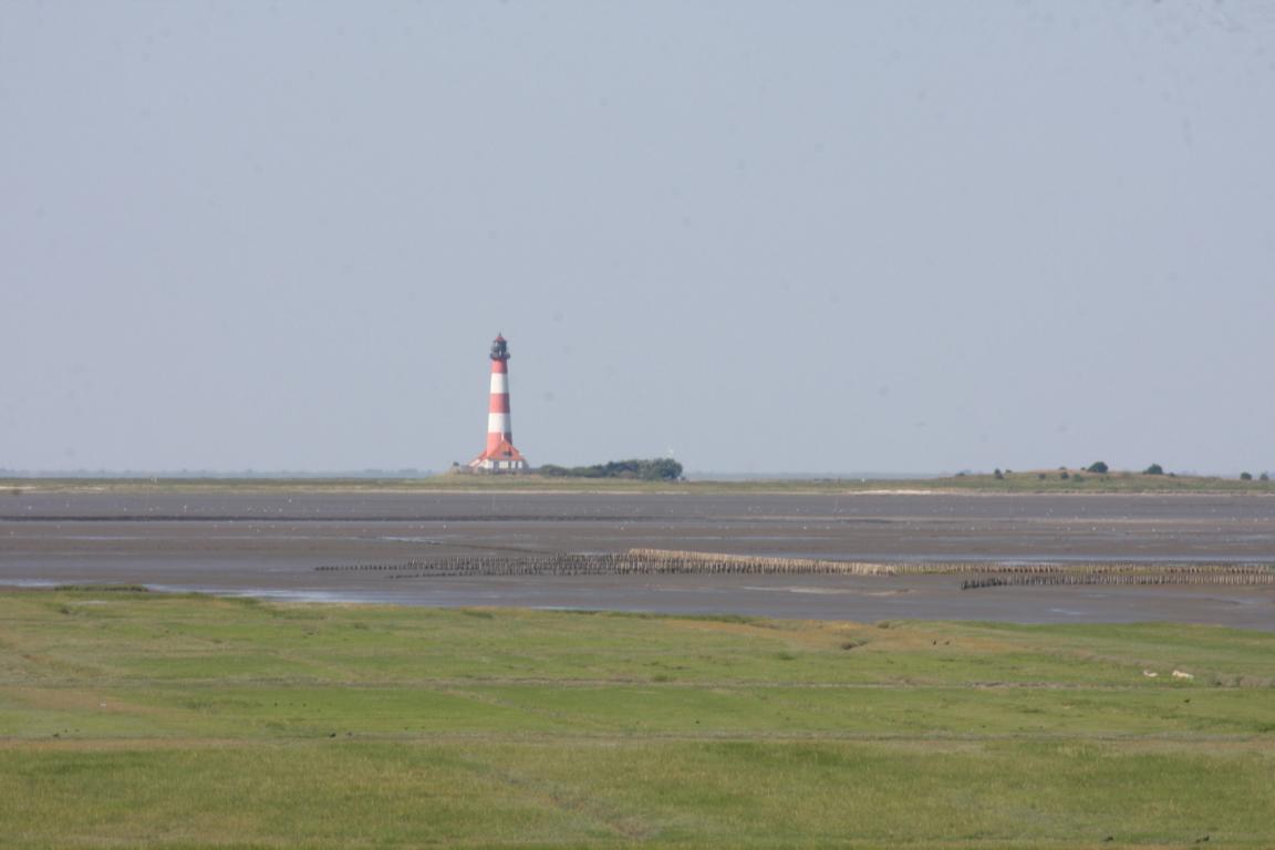 Hier einige typische Bilder von der Küstenlandschaft an der Nordsee an den Deichen und ein erster Blick auf den Leuchtturm von Westerhever
