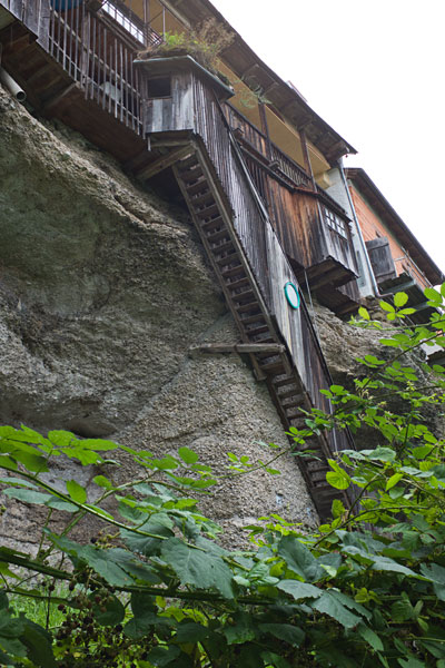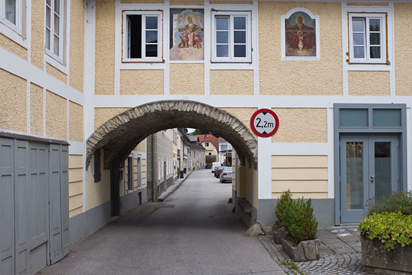 Es gibt einen schmalen Ybbsuferweg, der im Sommer begehbar ist. An der Uferseite sind steile felsige Hänge, die mit Häusern bebaut wurden. -