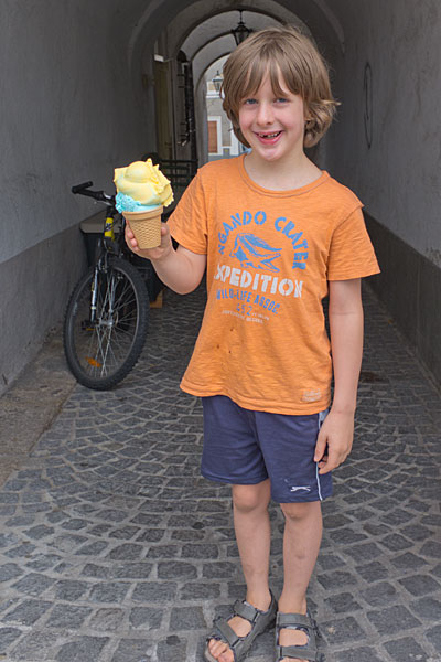 Heute Morgen wurden wir von Sonja, (Maxis Tochter) und Finn abgeholt. Da Maxi sich einen Muskelfaserriss zugezogen hat, konnte sie leider nicht mit uns Waidhofen erkunden.