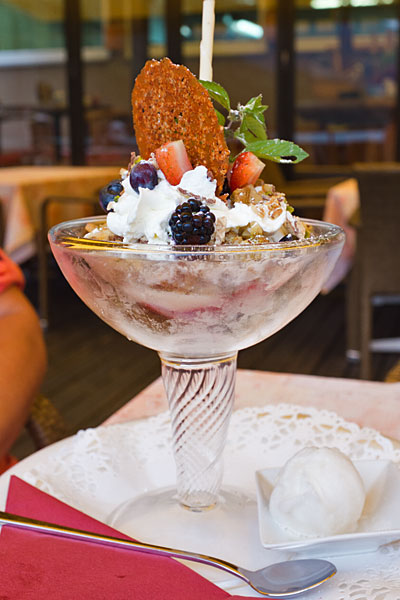 In einem schönen Café erholten wir uns bei einem Tonic-Sorbet und anderen Leckereien.