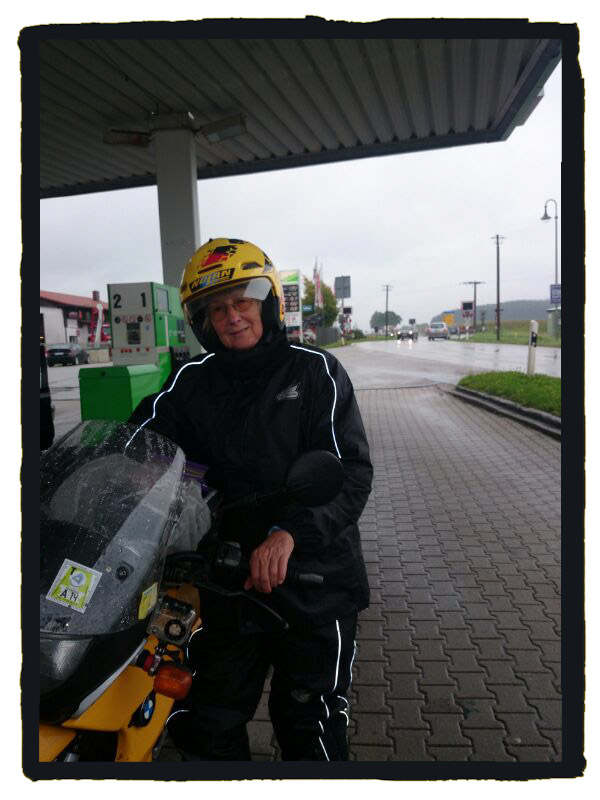 Ach, so schlimm war es nun auch nicht. Wir haben ja gute Regenklamotten. Ich bin überhaupt nicht nass geworden und Friedrich auch nicht. Nur im Regen zu fahren ist nicht so schön. Selbst mit dem Auto mag ich es nicht gerne. Die letzten 200 Kilometer hatte dann der Regen auch aufgehört.