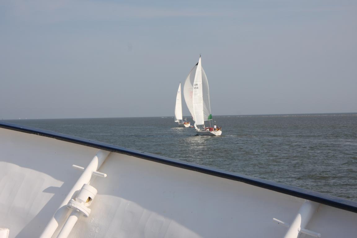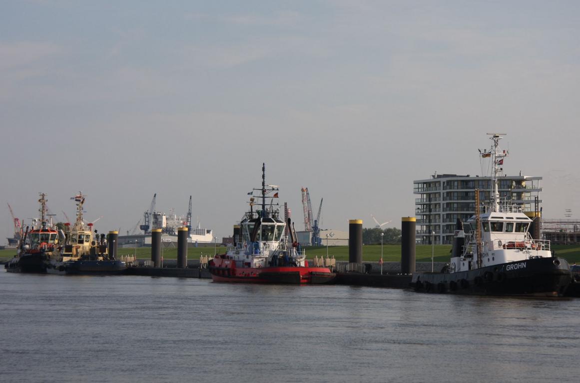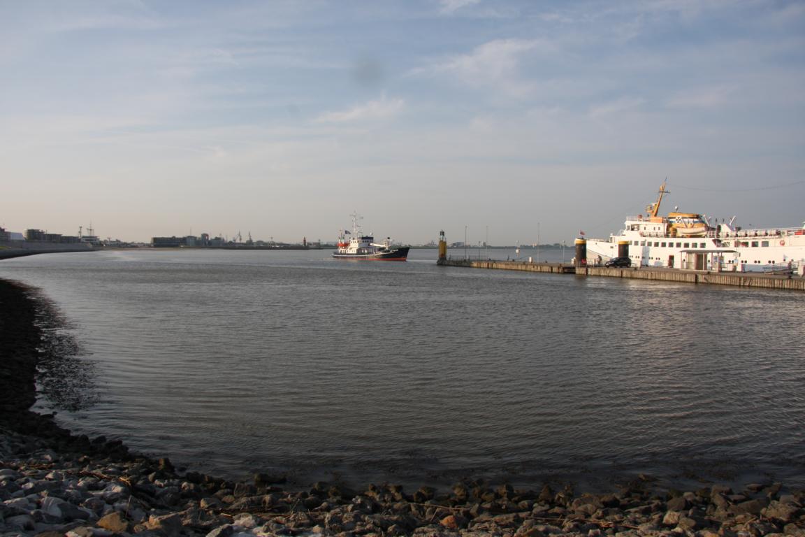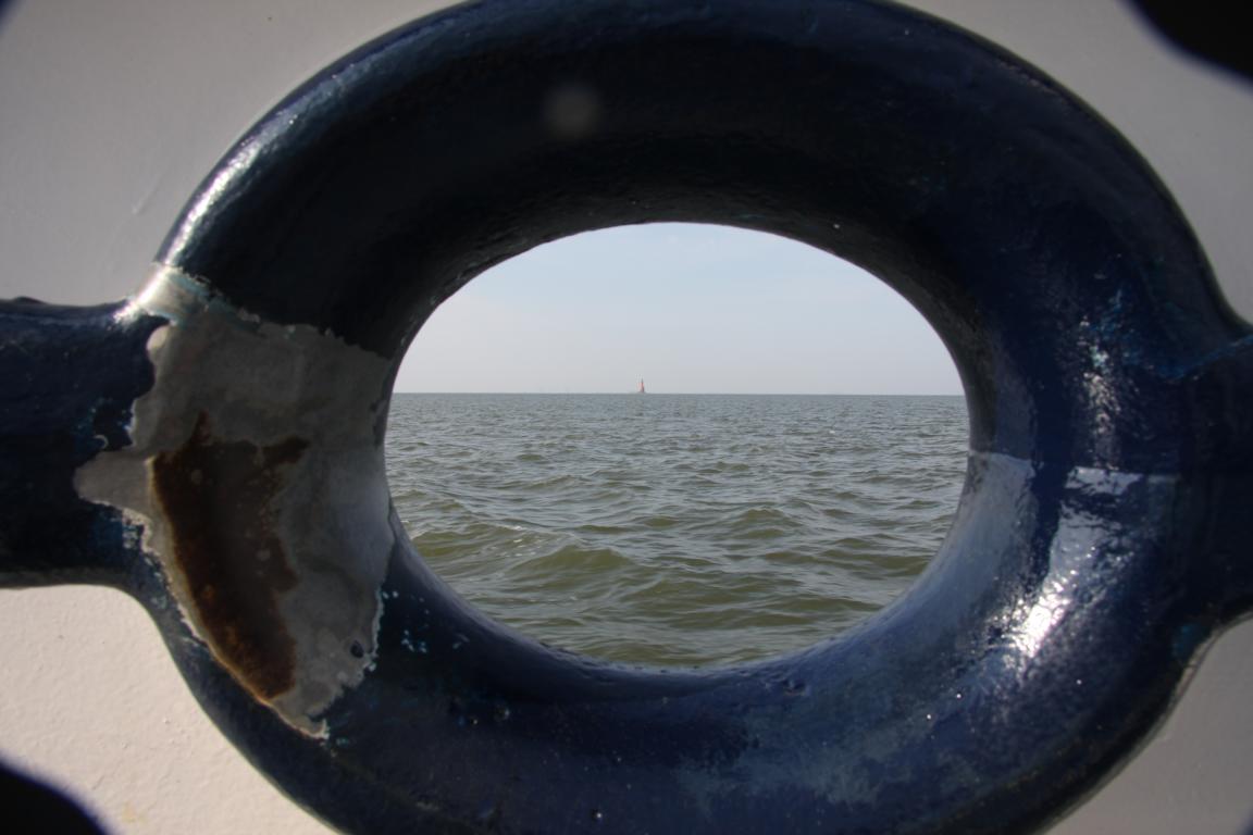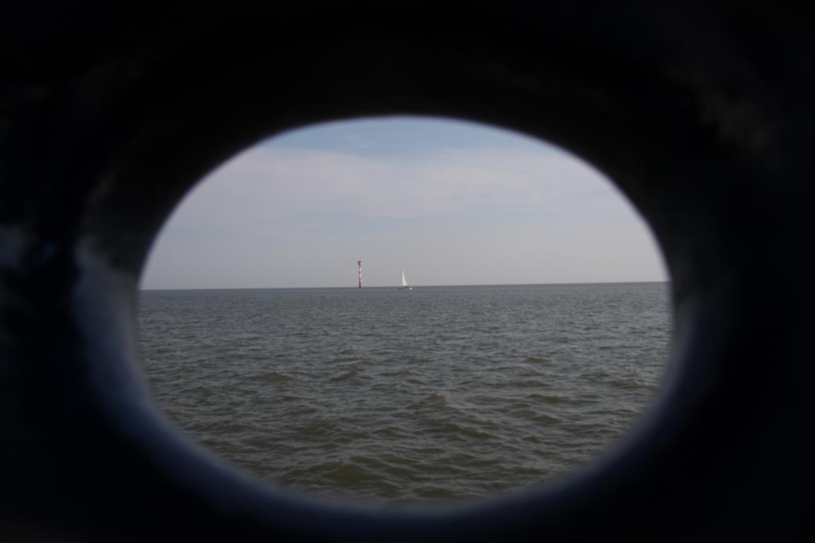 Dann geht es los: Zunächst entlang der Schlepper, am Simon-Lochen-Leuchtturm in Bremerhaven vorbei und am kleinen Pingelleuchtturm vorbei, dem einzigen Leuchtturm übrigens mit einer Nebelglocke