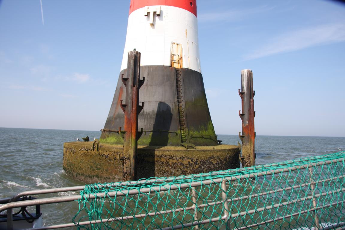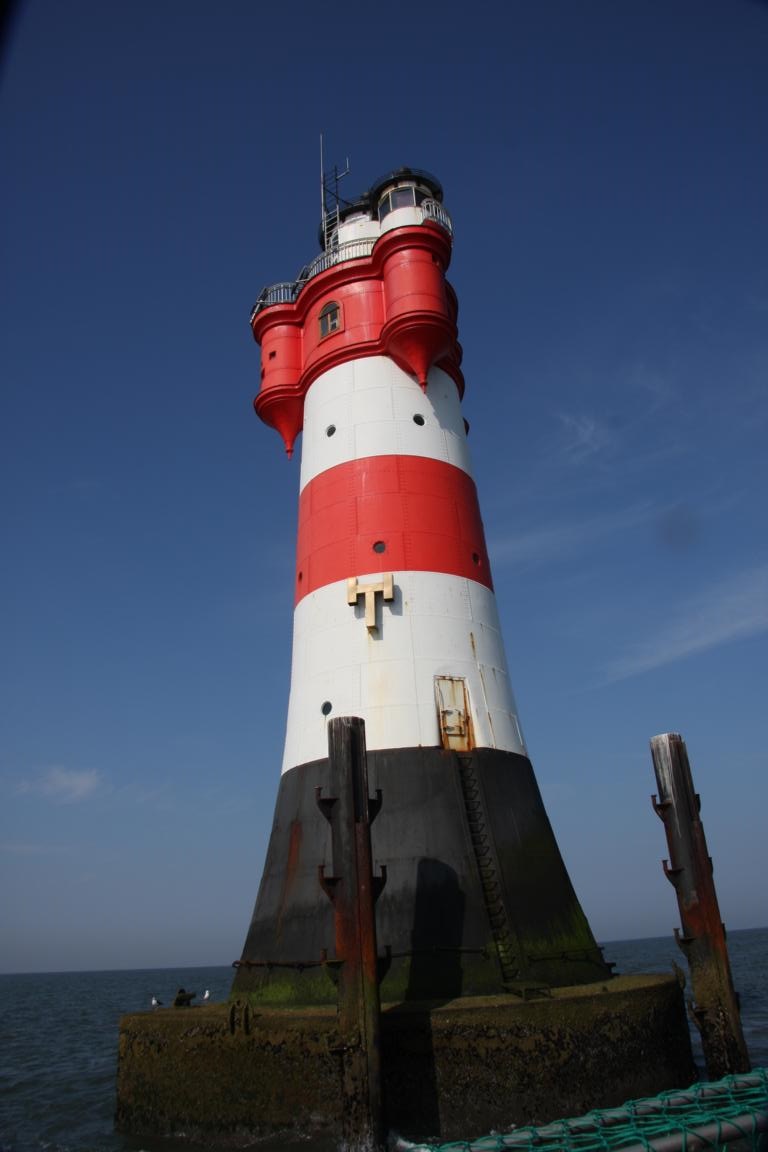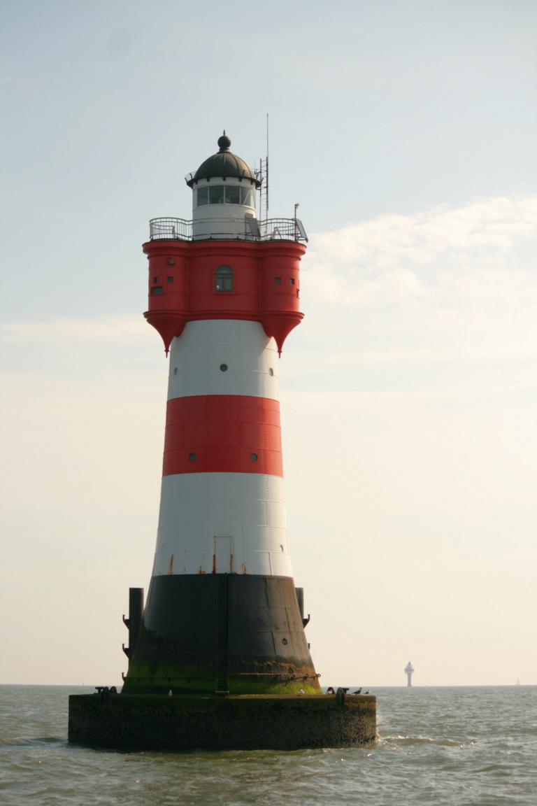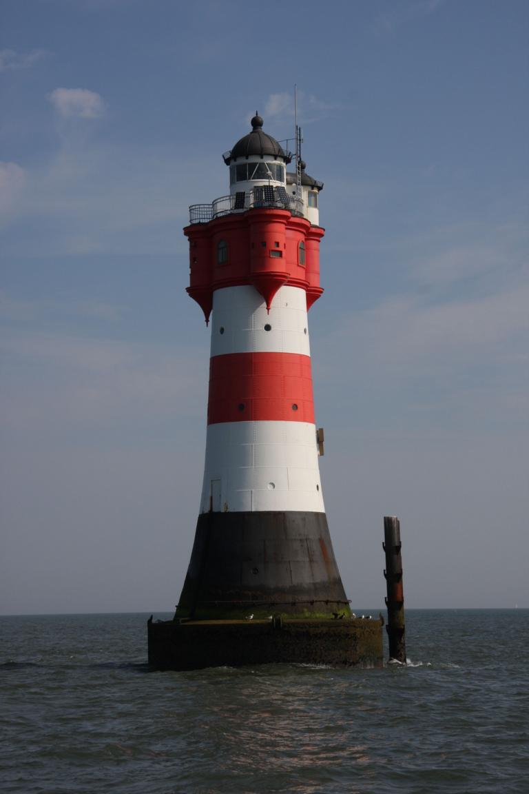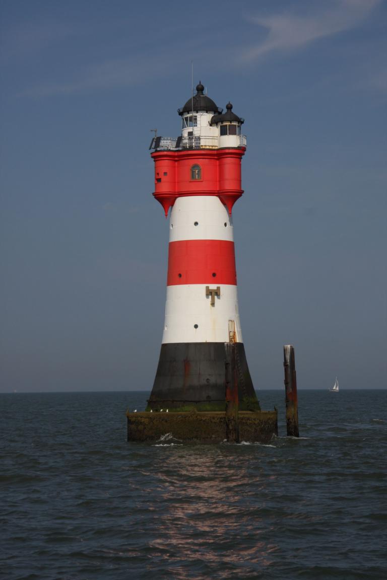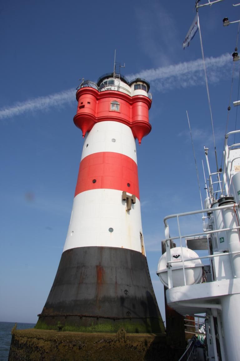 Der Leuchtturm Roter Sand steht im Meer fast 30 Seemeilen vor Bremerhaven. Das Schiff fährt ca. 2 1/2 Stunden dorthin.Der Leuchtturm wurde 1885 als erstes unmittelbar auf dem Meeresboden gegründetes Bauwerk errichtet. Alternativ hätten auch Feuerschiffe den Dienst machen können - diese hätten aber eine deutlich umfangreichere Mannschaft benötigt als der Turm. Und so entschied man sich für den Turm