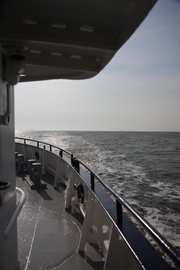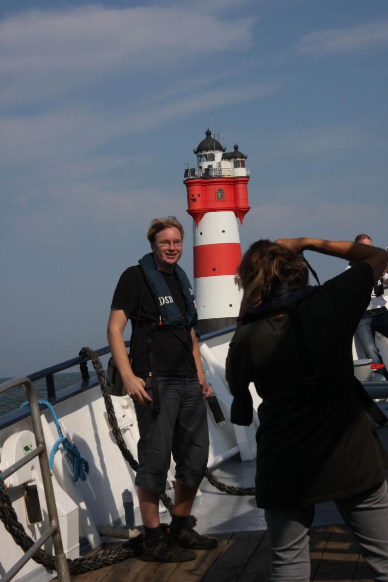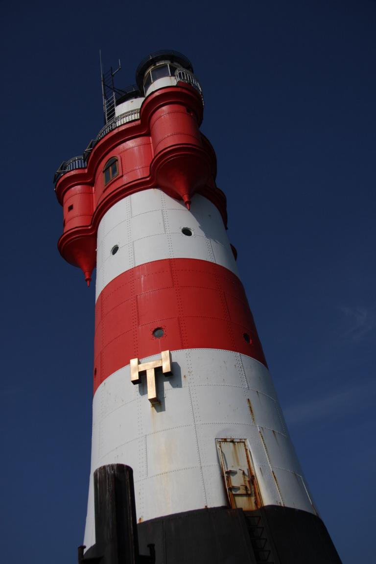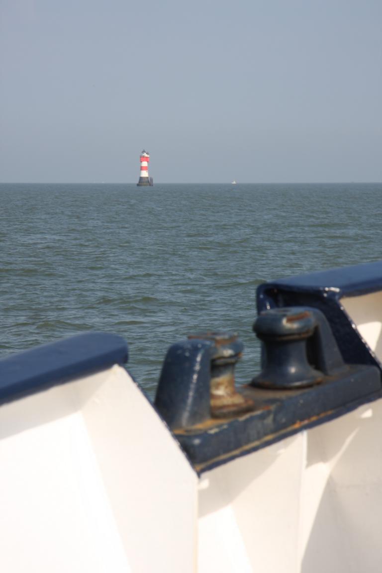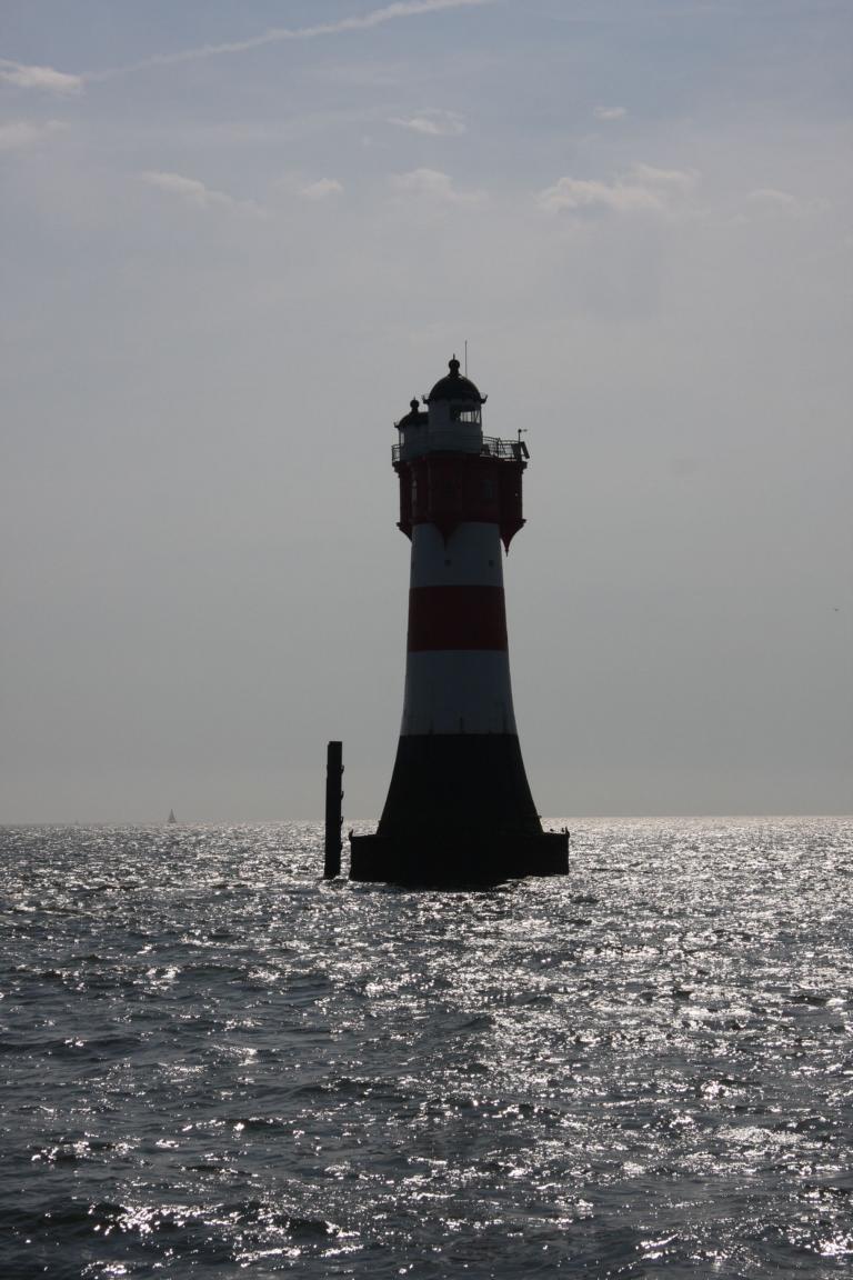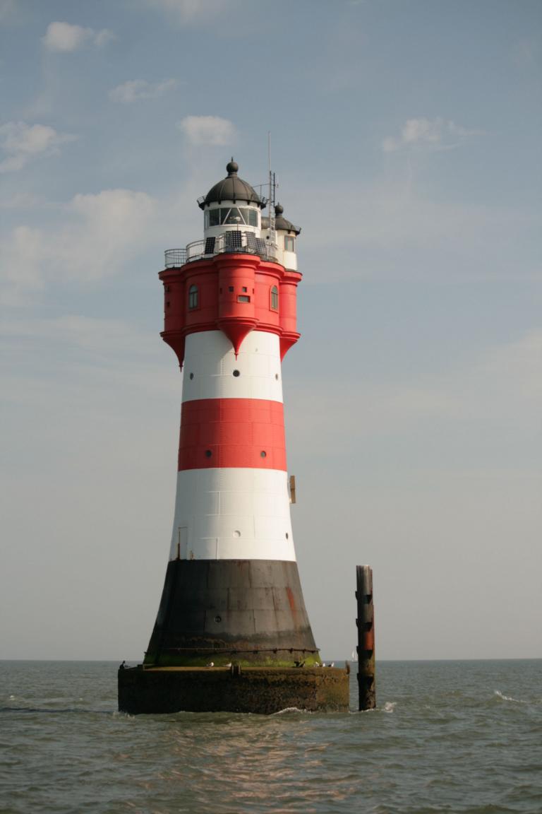 Der Leuchtturm Roter Sand steht im Meer fast 30 Seemeilen vor Bremerhaven. Das Schiff fährt ca. 2 1/2 Stunden dorthin.Der Leuchtturm wurde 1885 als erstes unmittelbar auf dem Meeresboden gegründetes Bauwerk errichtet. Alternativ hätten auch Feuerschiffe den Dienst machen können - diese hätten aber eine deutlich umfangreichere Mannschaft benötigt als der Turm. Und so entschied man sich für den Turm