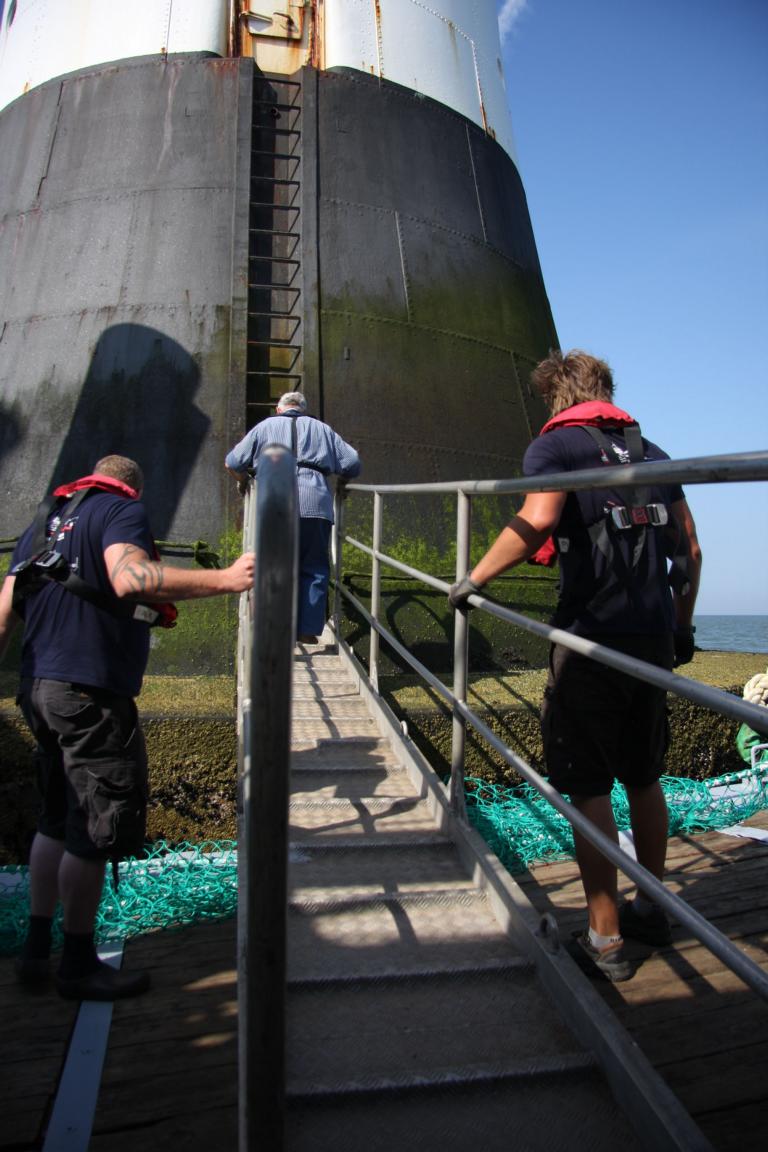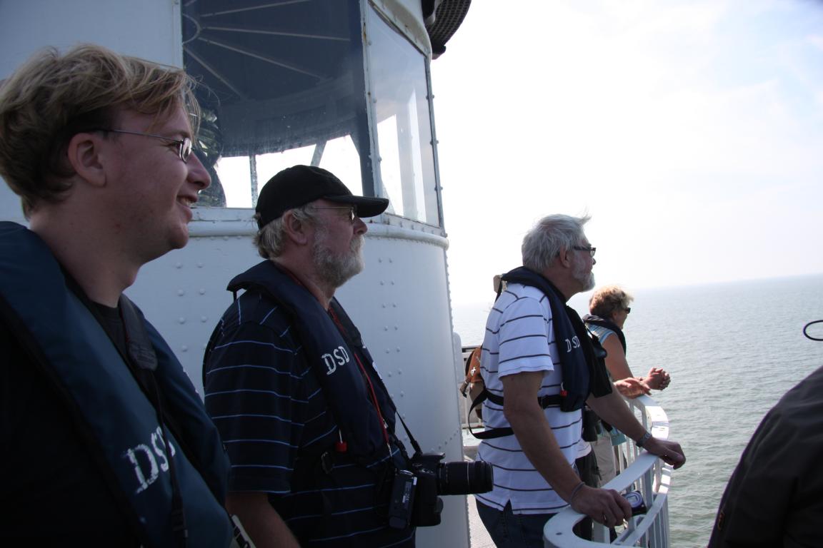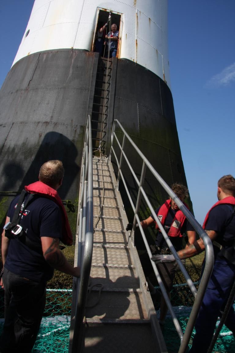 Pro Tour zum Leuchtturm fahren nur 12 Personen mit - Tages- und Übernachtungsgäste. Denn maximal 6 Personen können eine Nacht auf dem Turm verbringen und werden dann am Sonntag wieder abgeholt. Heute sind es 4 Übernachtungsgäste und 8 Tagesgäste.
