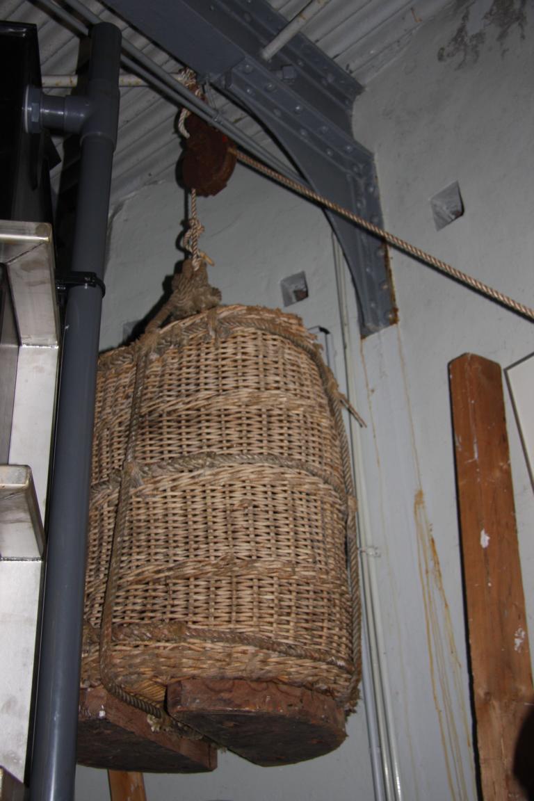 In der ersten Etage lagern Reservelebensmittel - auch für Tagesgäste als Notreserve, sollten die auf dem Turm verbleiben müssen, weil das Schiff wegen plötzlicher Wetterverschlechterung schnell ablegen muss. Es gibt eine Toilette und dort findet sich auch noch der Korb, mit dem man zu früheren Zeiten auf den Turm kam.