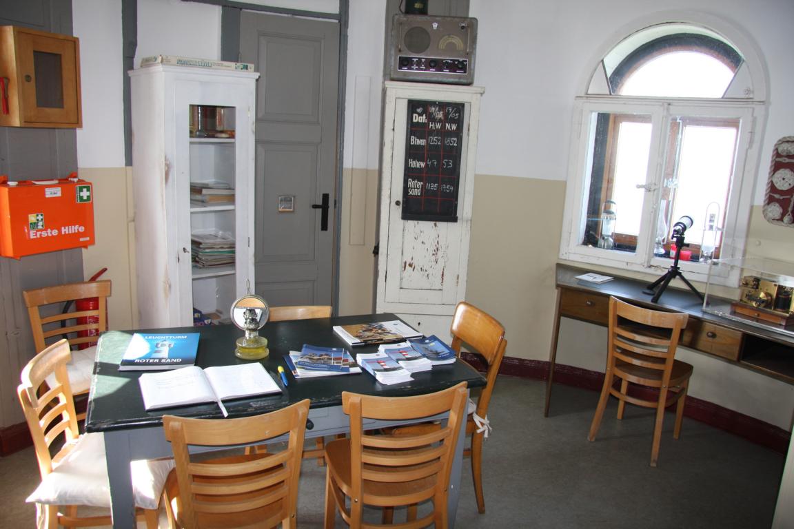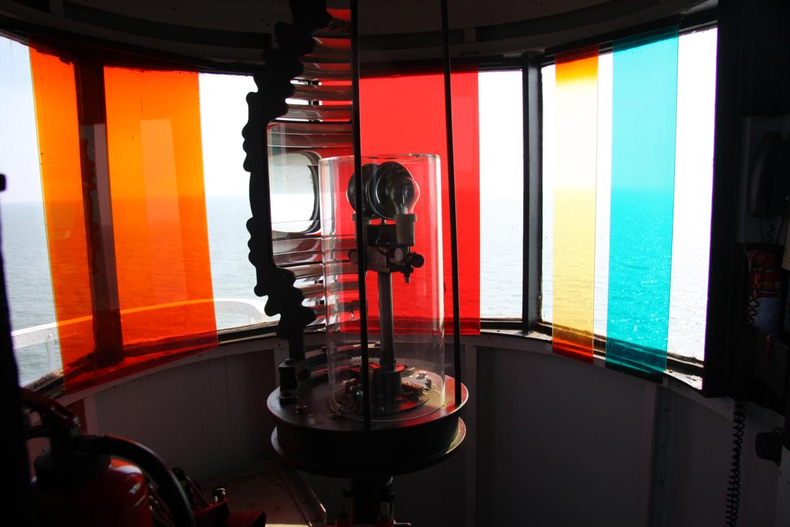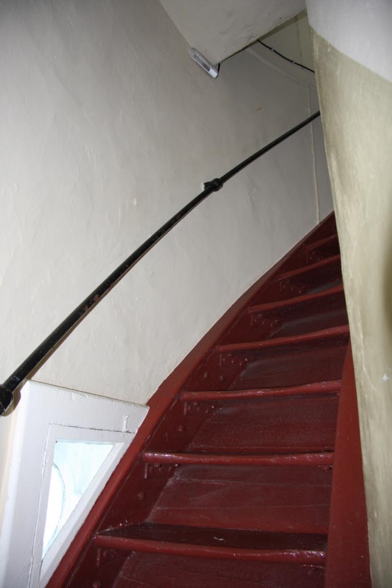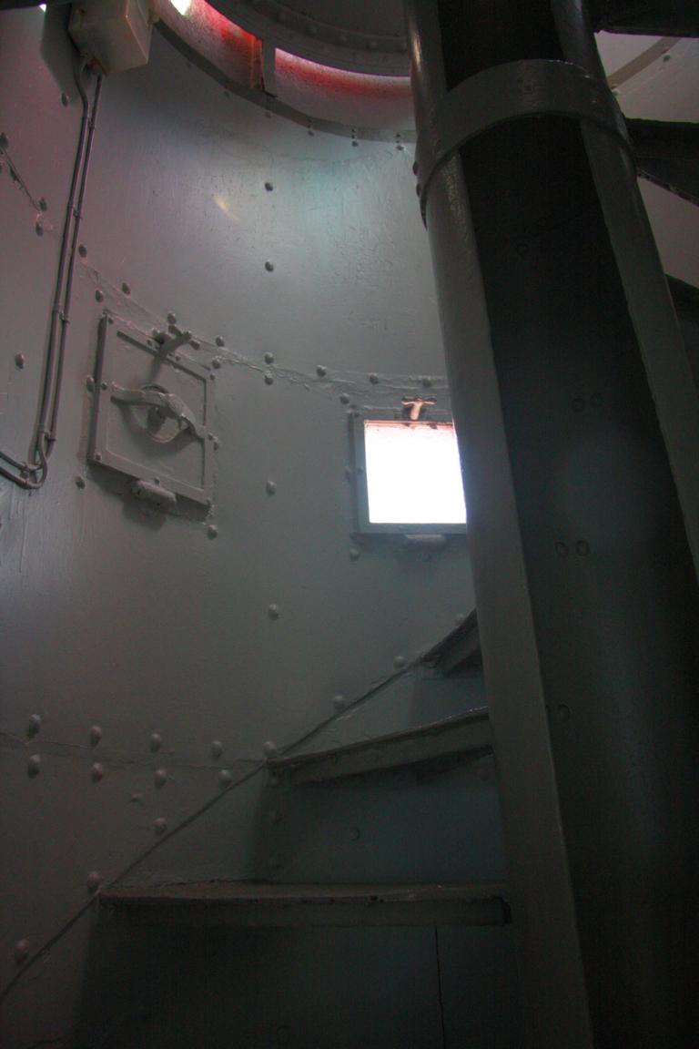 Weiter geht es in die 4. Etage, in der sich der Dienstraum befindet. Von dort aus geht es über eine Wendeltreppe im Nordosterker des Nebenfeuers in die oberste Etage, die Laternenebene mit Laternenraum für das Haupt- und ein Nebenfeuer.