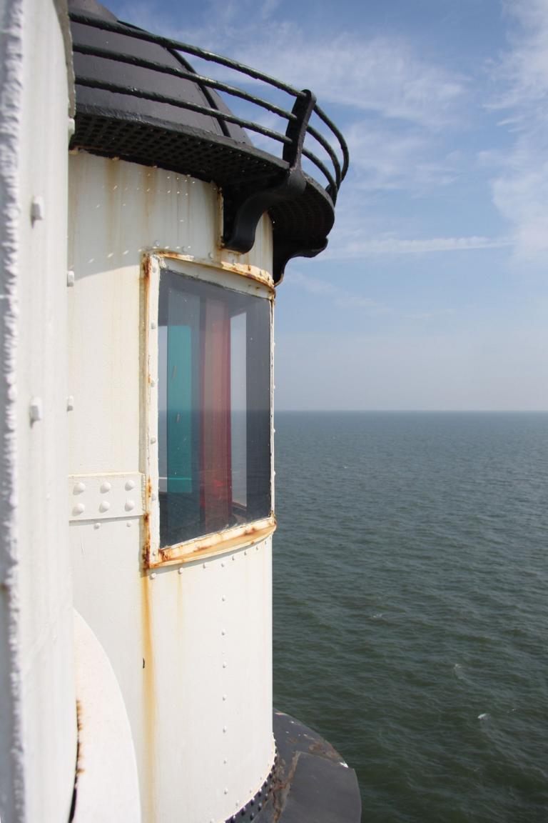 Und dann sind wir endlich oben - und haben einen Blick (1. Foto) auf das Leuchtfeuer, das die Aufgabe des Turms übernommen hat.